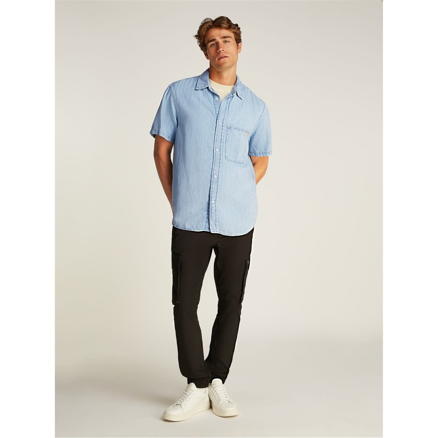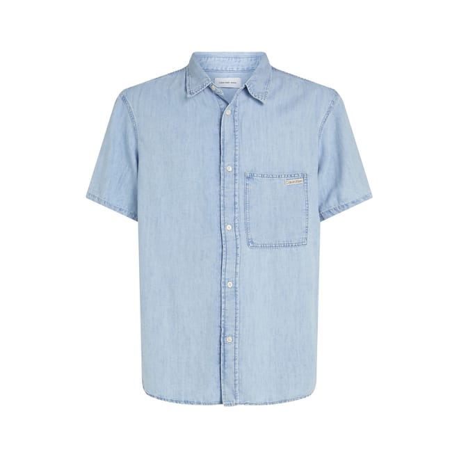 This Calvin Klein Jeans top is a summer essential, featuring a solid pattern and a regular fit. The short sleeves and shirt collar add a classic touch, while the button-down closure ensures a neat finish. A chest pocket with a logo embellishment enhances its casual appeal, making it a versatile addition to your wardrobe. -