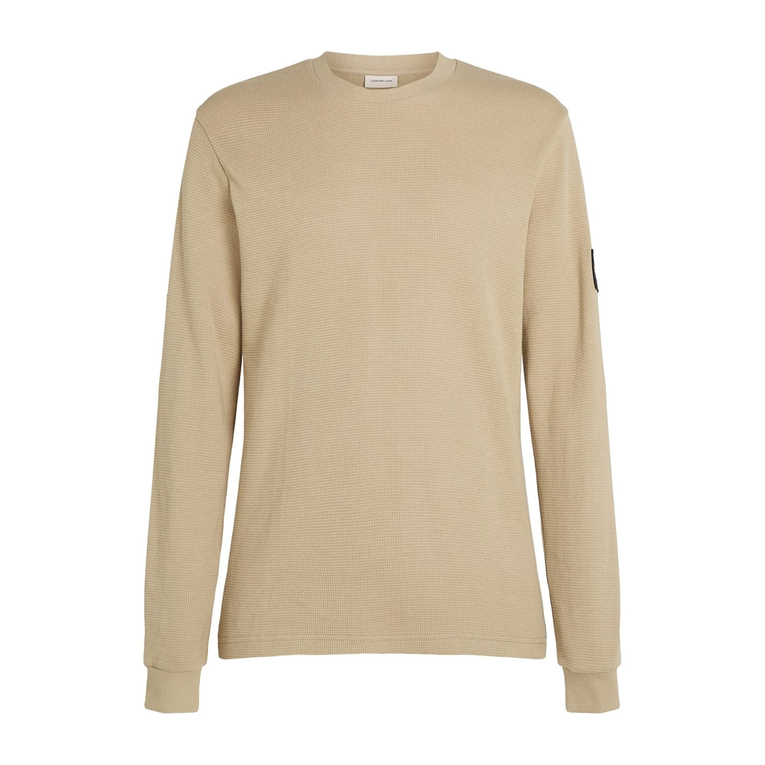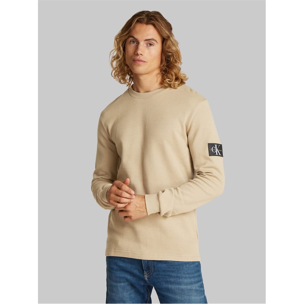 - Designed in a classic colour with the logo badge on the left sleeve adding a distinctive, authentic touch. Perfect for casual outings or laid-back gatherings, the Waffle Long Sleeve Top by Calvin Klein Jeans is made for any occasion. Pair with tailored trousers for a sophisticated look or with jeans for a casual appeal.