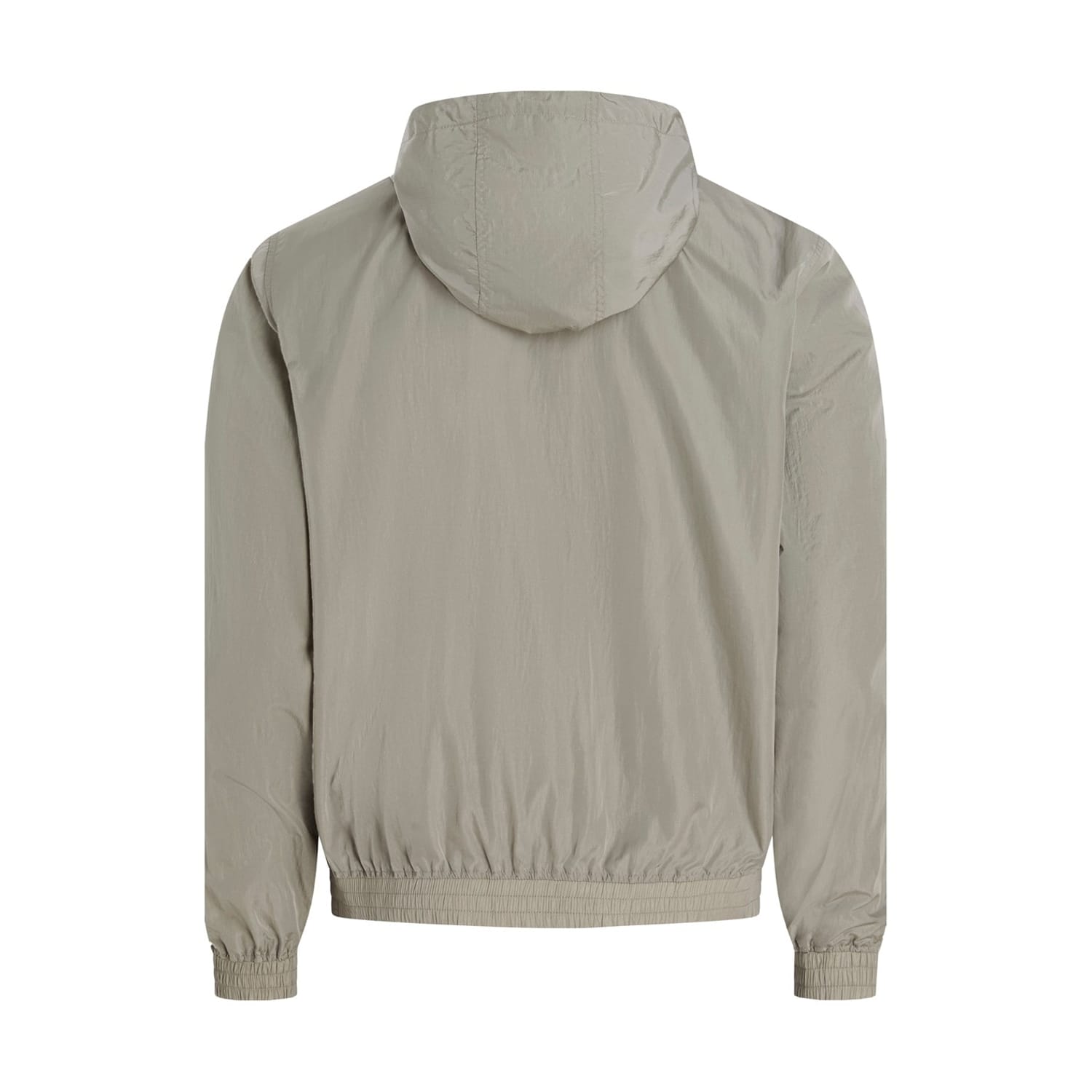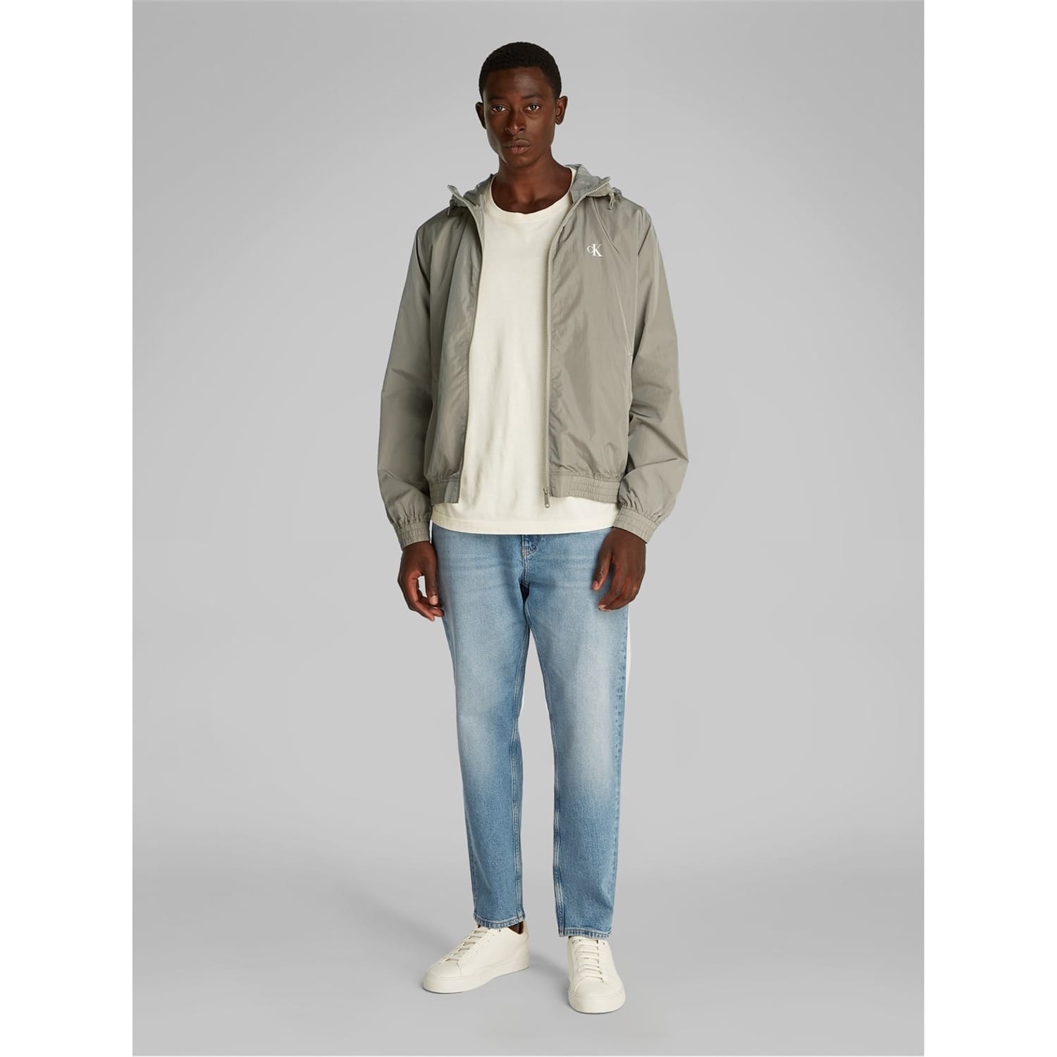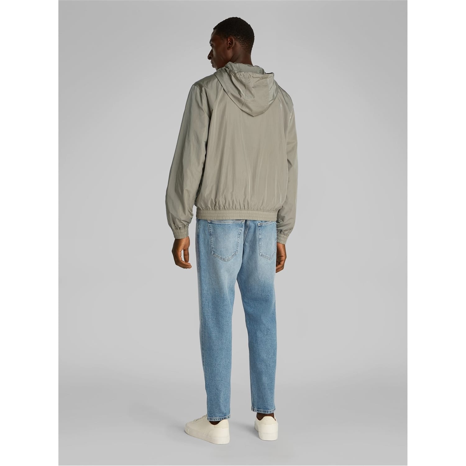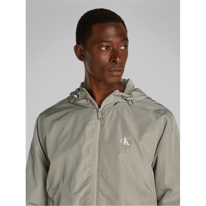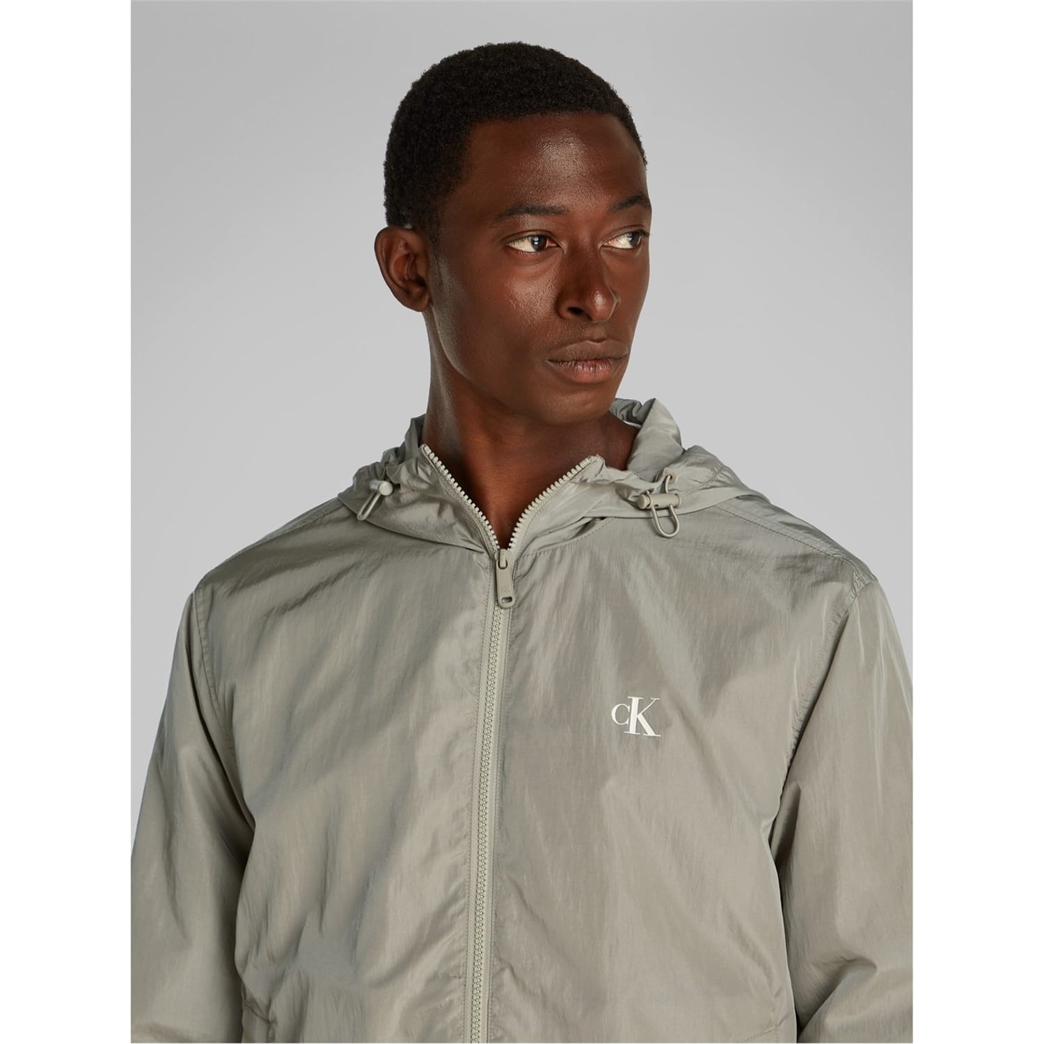 This Calvin Klein Jeans windbreaker features a hooded design with a solid pattern. It offers a regular fit and a short length, perfect for versatile styling. The jacket is equipped with a zipper closure and showcases a logo embellishment. Ribbed and elasticated cuffs and hem provide a snug fit, ensuring comfort and style. -