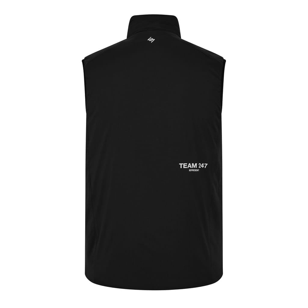 The Represent 247 gilet is a versatile piece from the activewear collection, designed for performance. It features a high neck and a straight hem, providing a regular fit. The solid pattern and logo embellishment add a touch of style, while the insulated design ensures warmth. The zipper closure offers convenience, making it an ideal choice for active pursuits. -