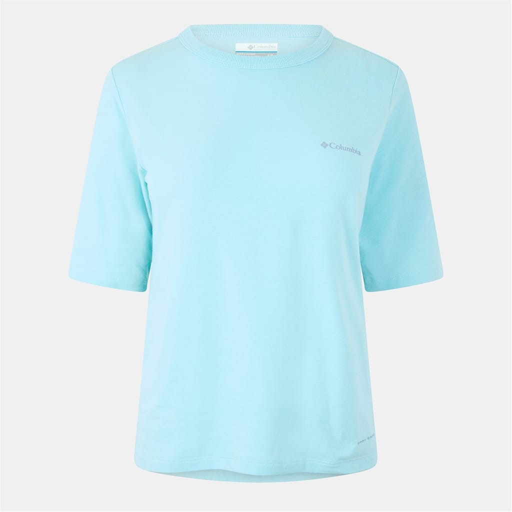 Discover Columbia's trek top, designed for performance and perfect for summer. This short-sleeve piece features a crew neck and regular fit, offering comfort and style. The solid pattern and logo embellishment add a touch of simplicity, making it a versatile addition to any casual collection. -
