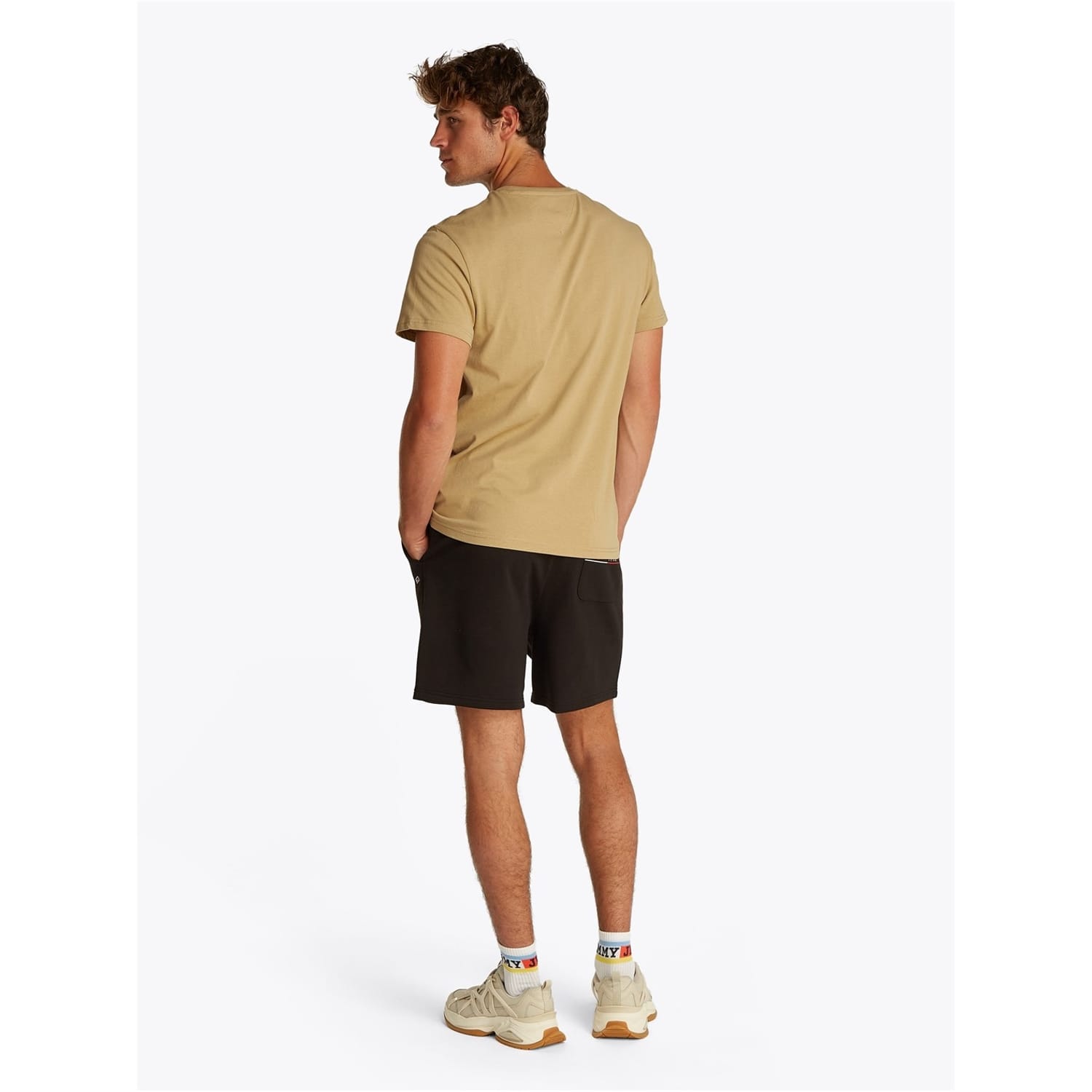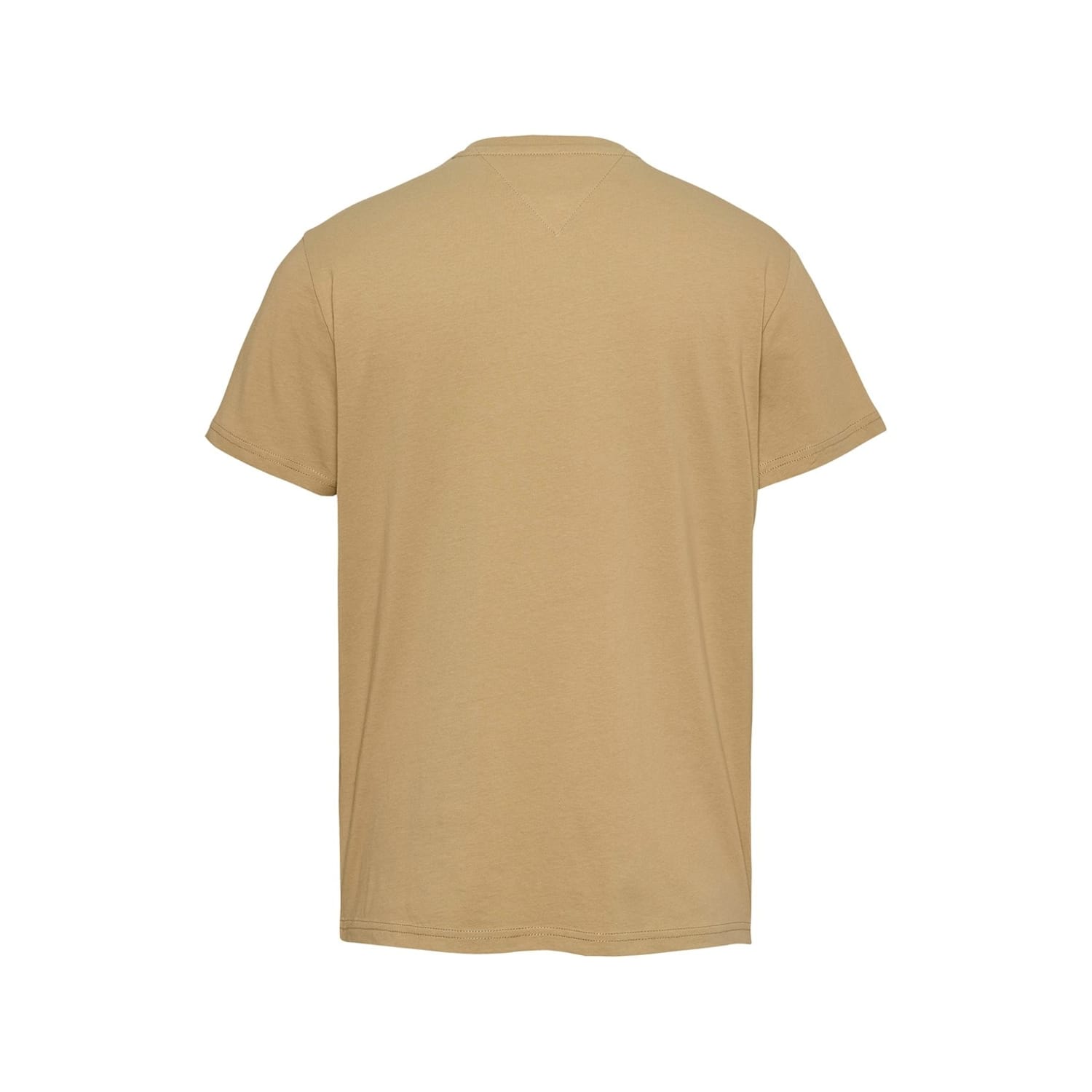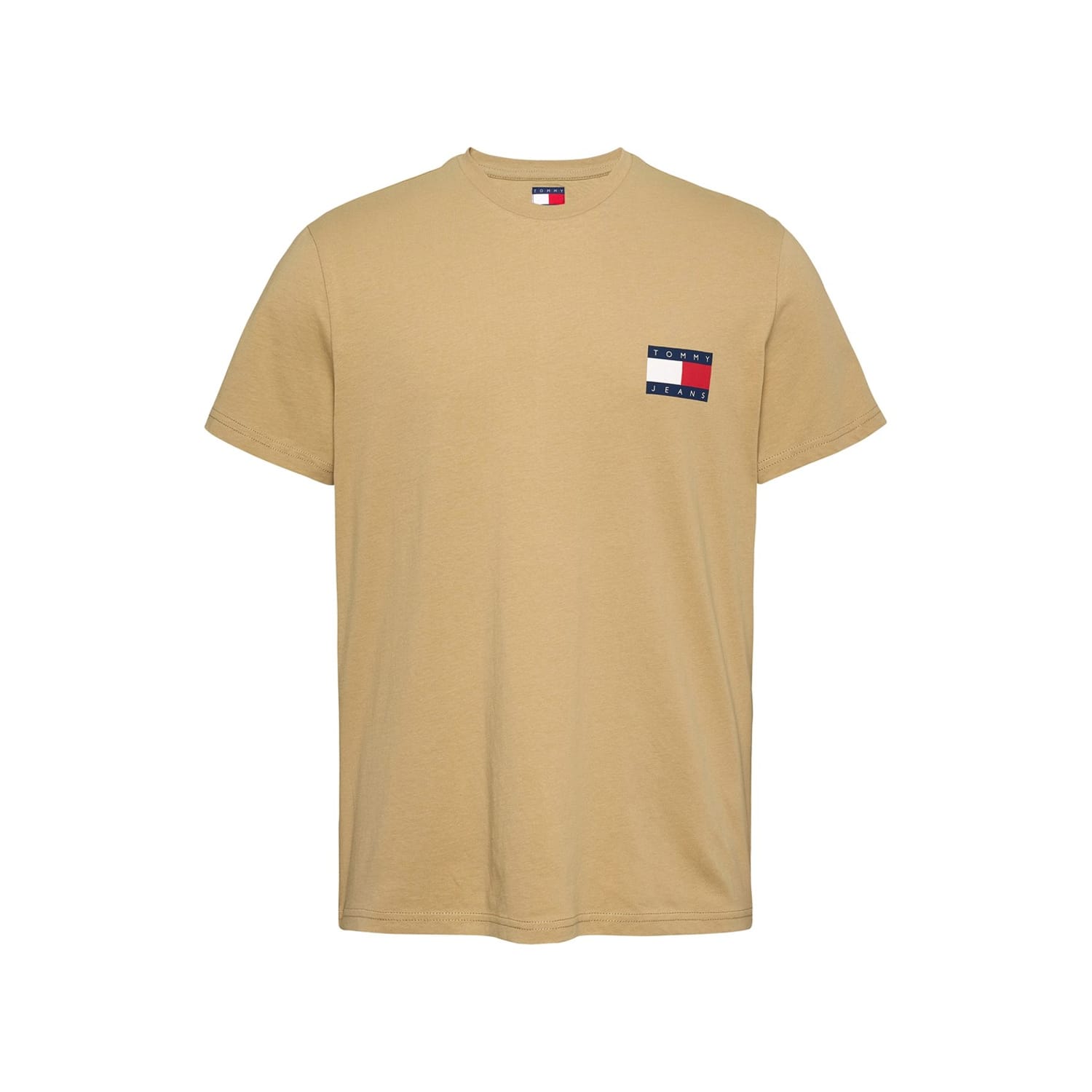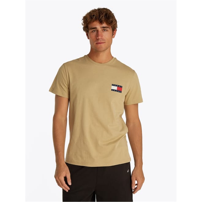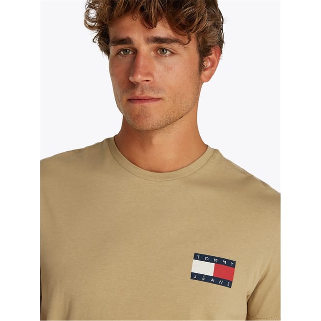 This Tommy Jeans top features a slim fit with a crew neck and short sleeves. The casual piece is adorned with a graphic print and a distinctive flag logo, making it a stylish addition to any wardrobe. -