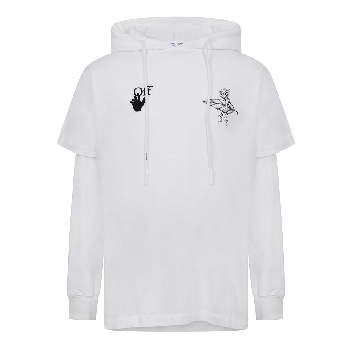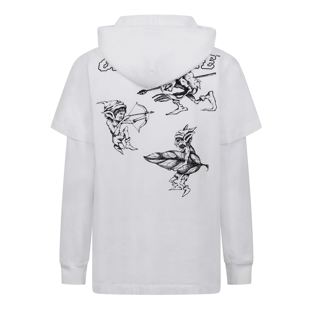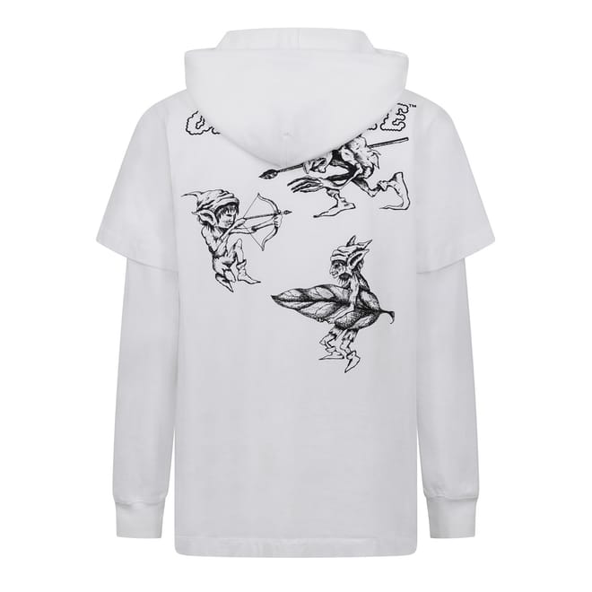 This Off White top features a hooded design with a drawstring closure, offering a regular fit. The standout element is its large genie graphic print, adding a unique touch to the garment. Ideal for those who appreciate bold and artistic designs. -
