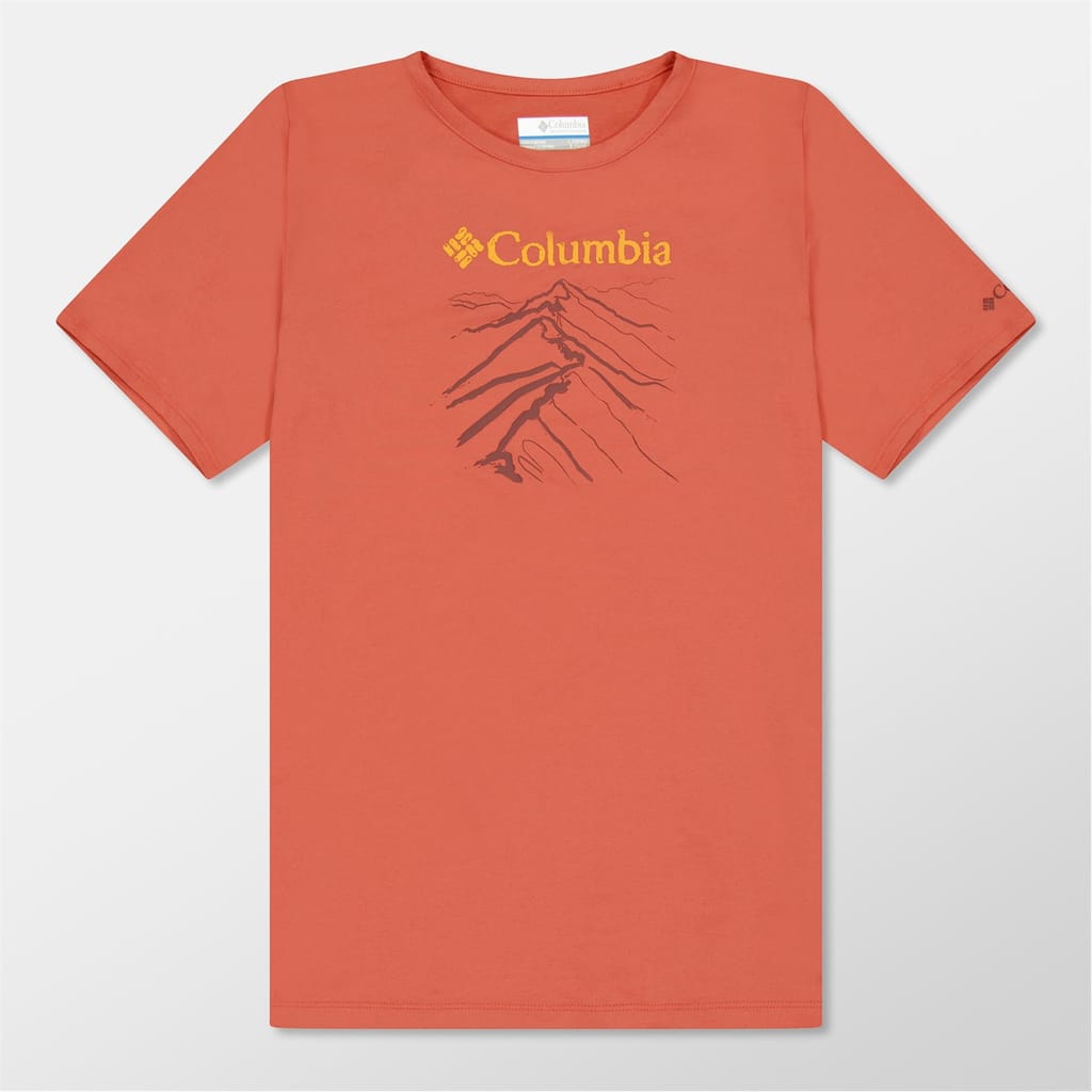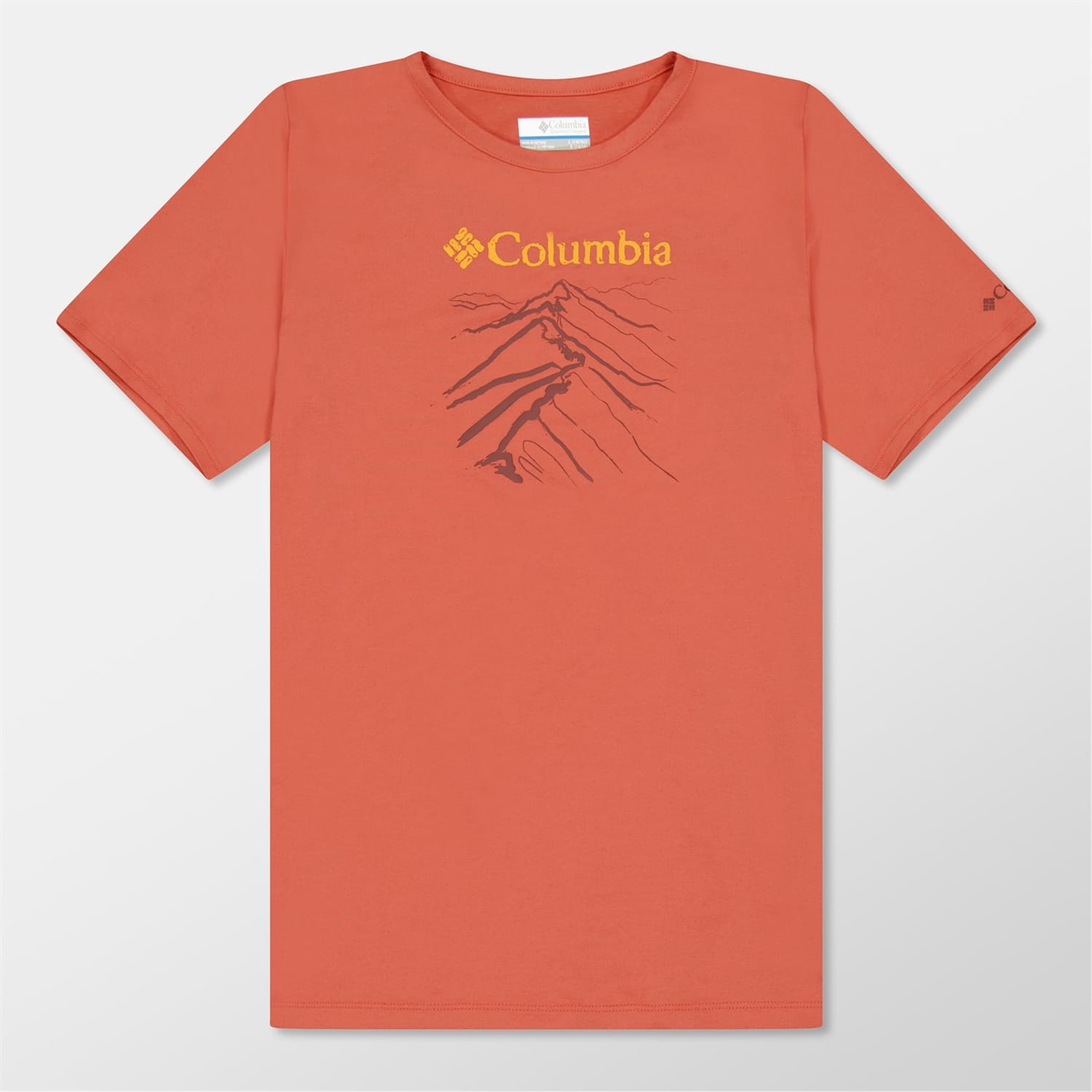 Columbia tech top designed for performance and activewear. This short sleeve top features a crew neck and a regular fit, making it ideal for casual and active settings. The graphic print adds a stylish touch, while the logo embellishment highlights the brand's identity. -
