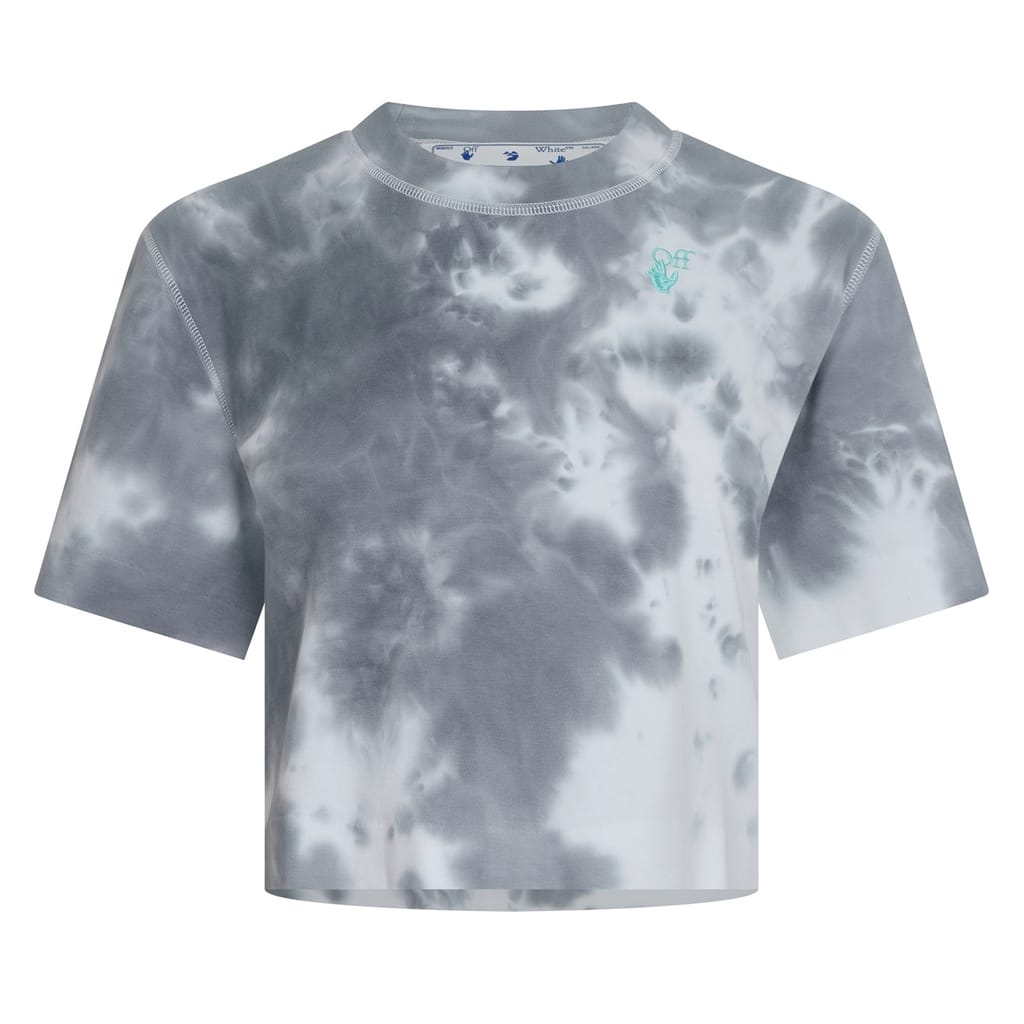 Embrace casual style with this Off-White t-shirt, featuring a tie-dye pattern and an embroidered design for a unique touch. The regular fit and crew neck ensure a comfortable wear, while the short sleeves keep it breezy. With its cropped length, this top is a trendy addition to any wardrobe, perfect for those who appreciate both style and comfort. -