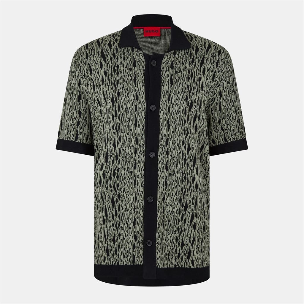 This Hugo top features a regular fit with a short sleeve design, perfect for a casual yet stylish look. The abstract pattern adds a unique touch, while the button closure ensures a classic finish. Crafted with a knit texture, this top combines comfort and style effortlessly. -