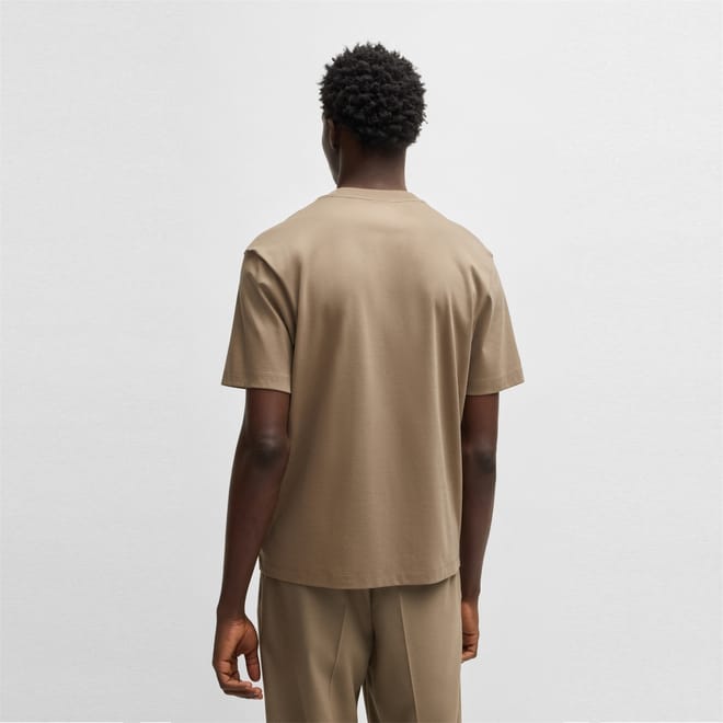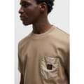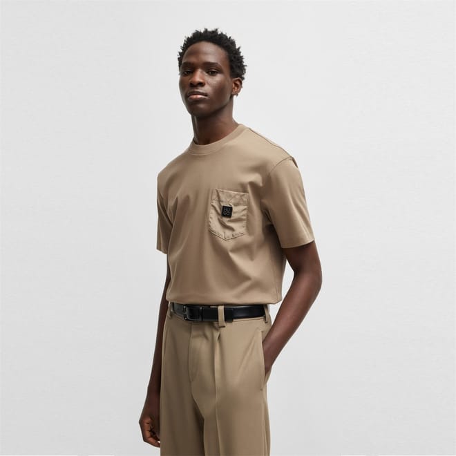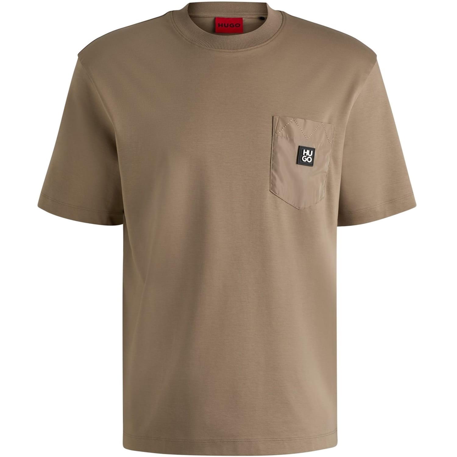 This Hugo top is a perfect addition to your casual collection. Featuring a regular fit and a classic crew neck, it offers a comfortable and stylish look. The solid pattern is complemented by a pocket and a subtle logo patch, adding a touch of brand identity. Ideal for those seeking a blend of simplicity and elegance in their wardrobe. -