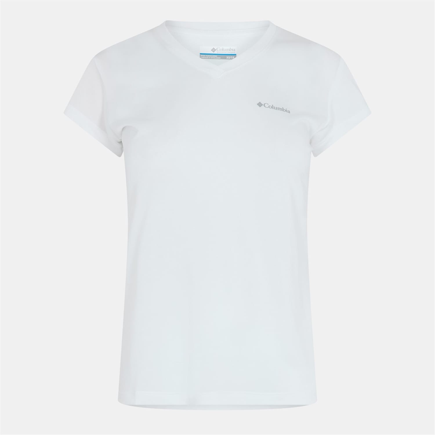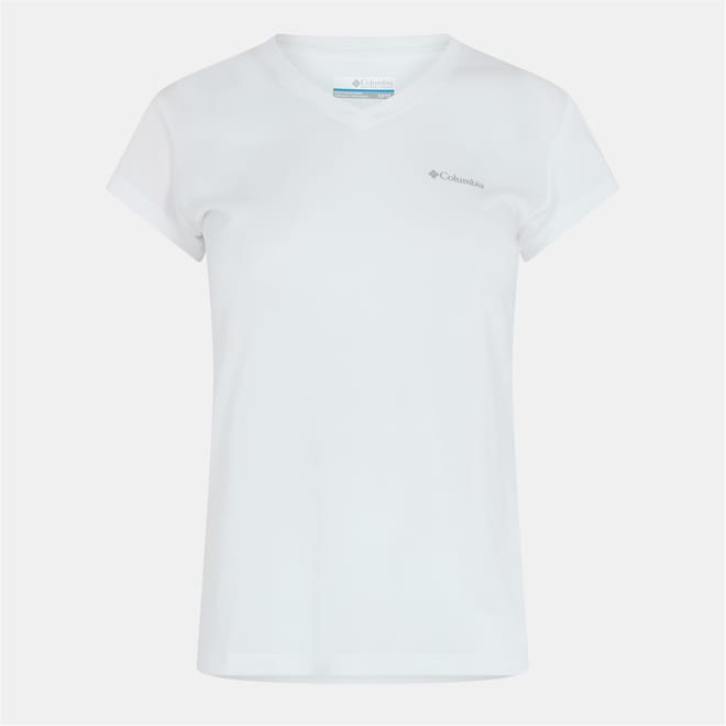 This Columbia top is perfect for summer, featuring a solid pattern and a V-neck design. Crafted for performance, it offers a regular fit and short sleeves, making it ideal for both casual and activewear collections. The top is embellished with a logo, adding a subtle touch of brand identity. -