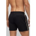Embrace summer in style with the Boss Iconic Swim Shorts, your ultimate beach companion. Designed with twin slit pockets and a touch-close back pocket, these trunks offer both practicality and comfort. Perfect for stashing essentials while lounging by the pool or taking a stroll along the shore, they combine functionality with effortless sophistication for any beach getaway.