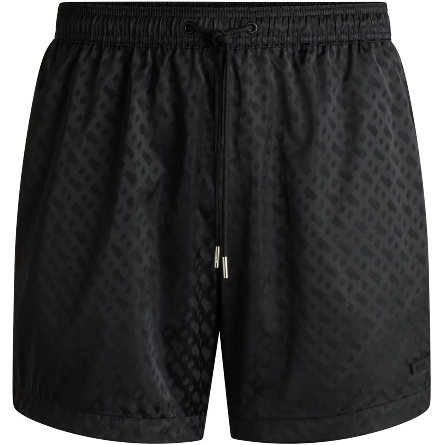 Discover the Boss swimwear collection with these geometric swim bottoms. Featuring a drawstring closure for a secure fit, these swim bottoms are adorned with a subtle logo embellishment, adding a touch of sophistication to your beachwear. Perfect for those who appreciate style and comfort in their swimwear. -