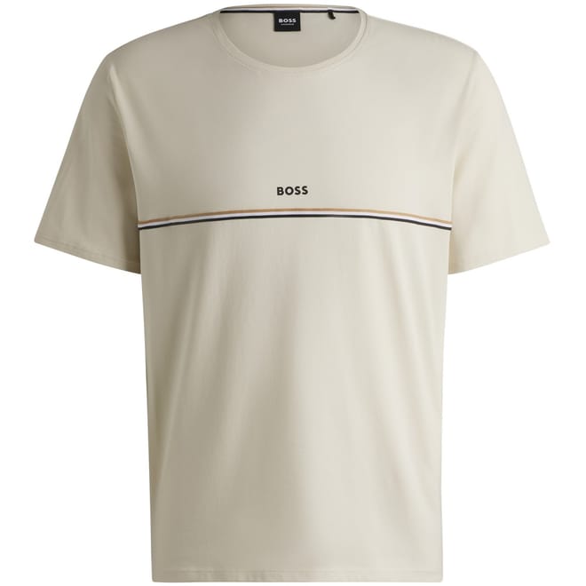 This Boss top from the casual collection features a regular fit and a classic crew neck. The short sleeves and stripe pattern add a touch of style, while the logo embellishment provides a subtle brand detail. -