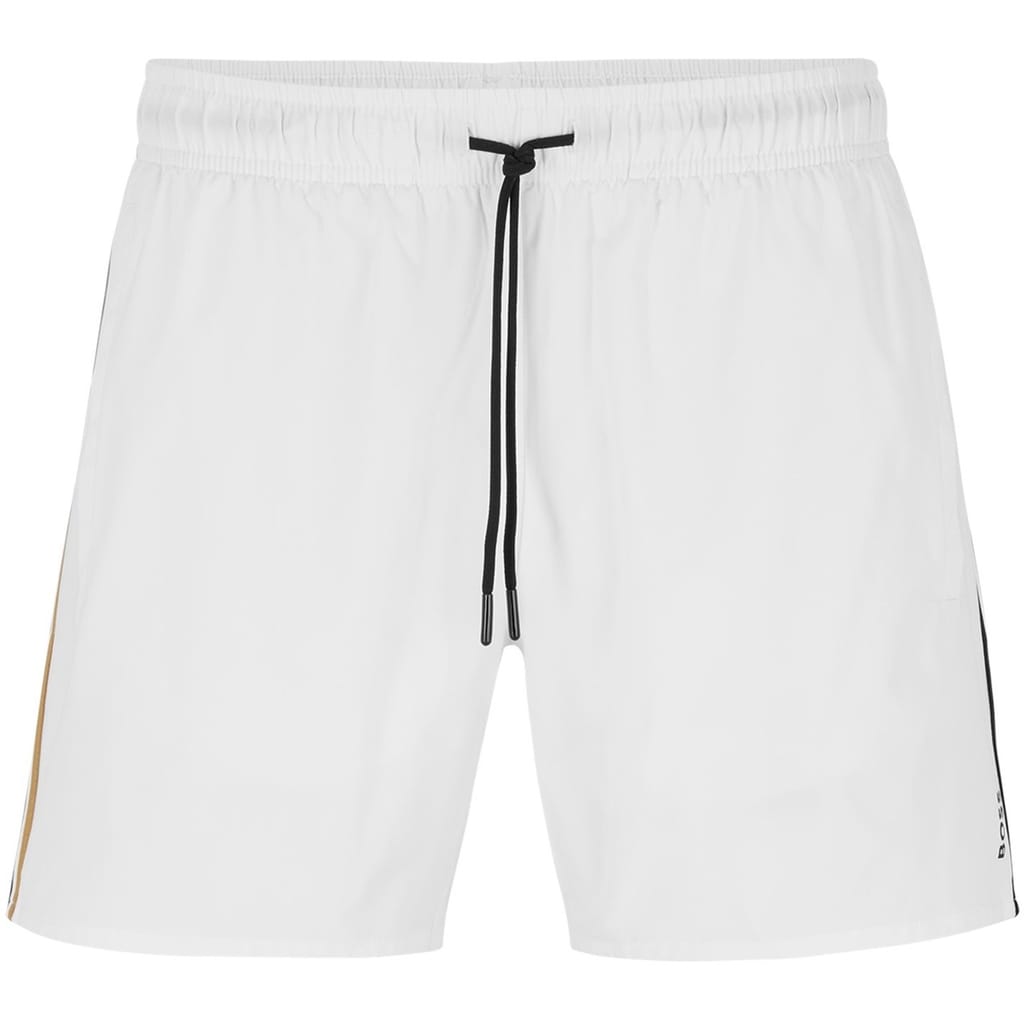 Discover the Boss swimwear swim bottom, designed with a practical drawstring closure for a secure fit. This piece features a subtle logo embellishment, adding a touch of brand identity. Ideal for those seeking a blend of style and functionality in their swimwear collection. -