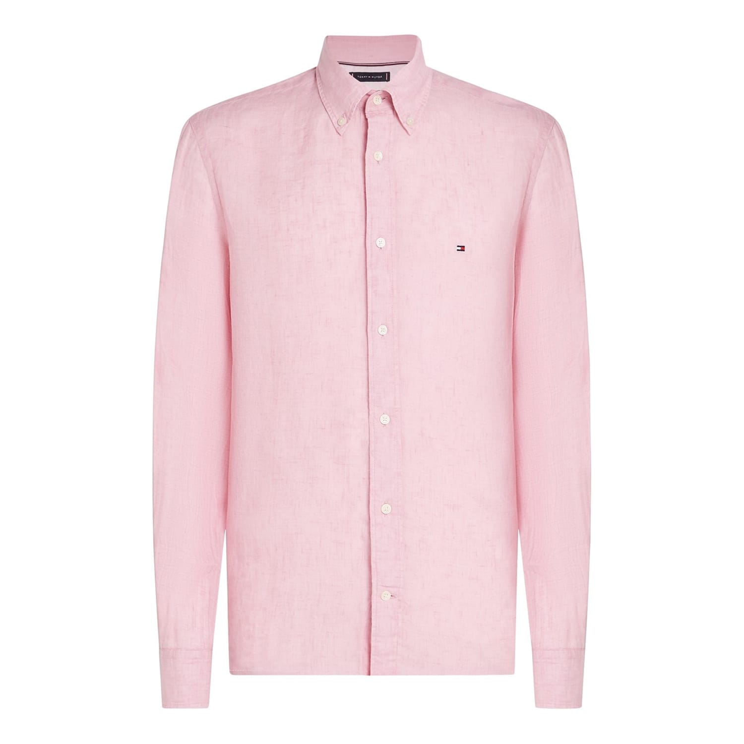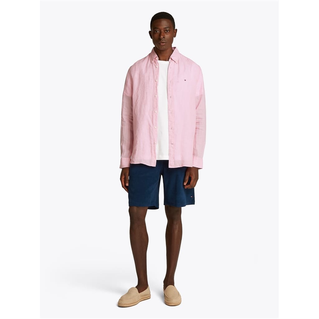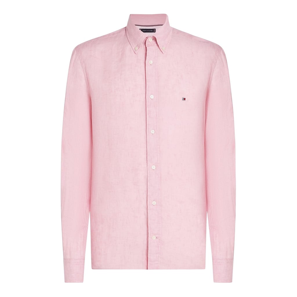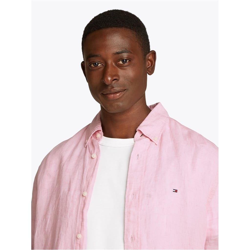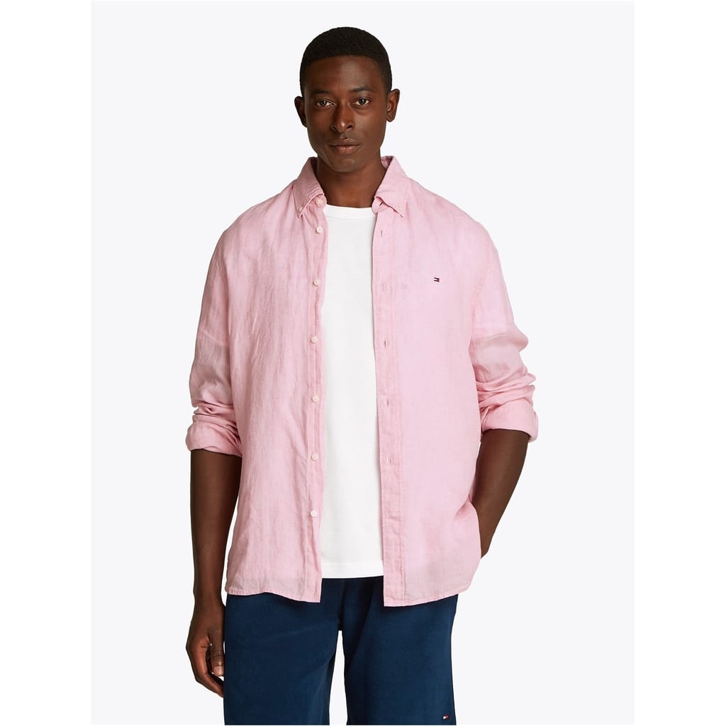 This Tommy Hilfiger top is a solid long-sleeve piece, perfect for casual spring and summer wear. It features a button-down closure and a regular fit, offering both style and comfort. The top is adorned with a subtle logo embellishment, adding a touch of brand identity to your wardrobe. -