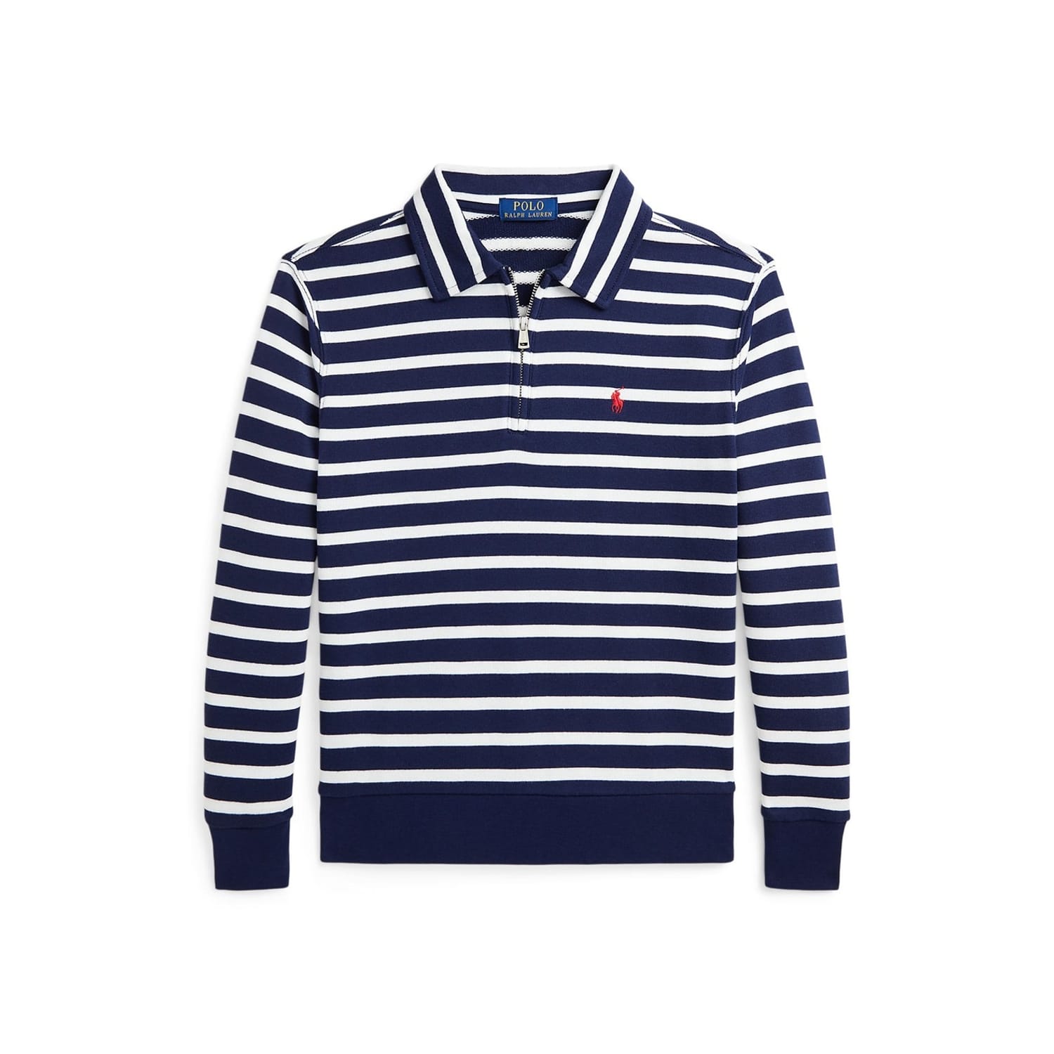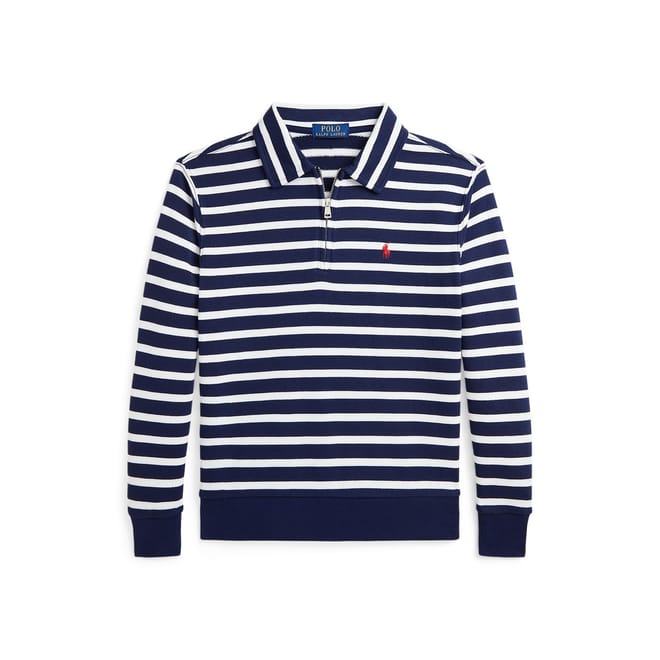This Polo Ralph Lauren top features a classic stripe pattern and a polo collar, perfect for both semi-formal and casual occasions. The regular fit ensures comfort, while the quarter zipper adds a touch of practicality. A subtle logo embellishment completes the look, making it a versatile addition to your wardrobe. -