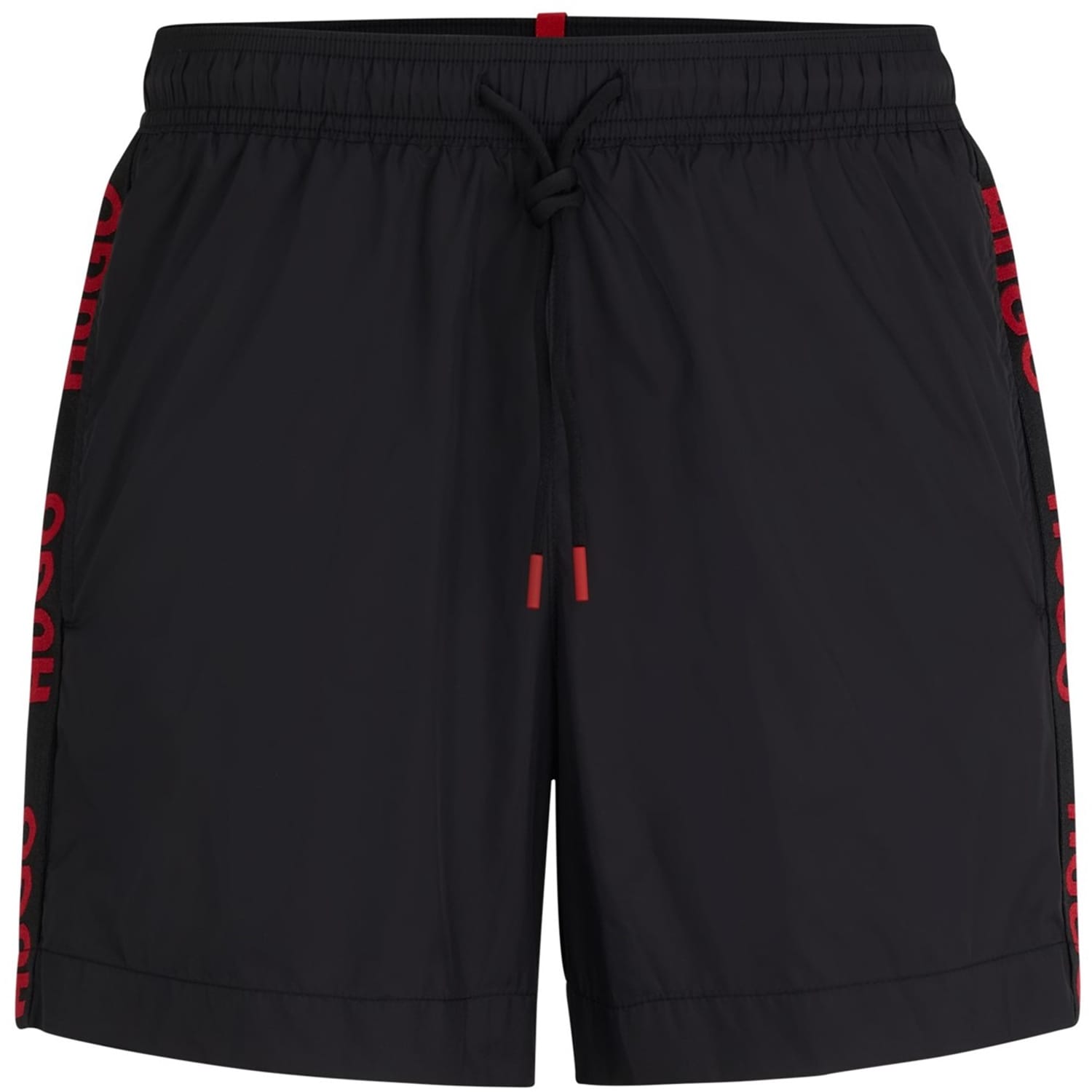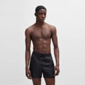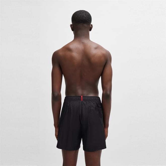 Discover Hugo swimwear with these stylish swim bottoms. Featuring a convenient drawstring closure, they ensure a secure fit for your aquatic activities. The design is elegantly finished with a subtle logo embellishment, adding a touch of brand identity. Perfect for those seeking both functionality and a sleek look in their swimwear. -