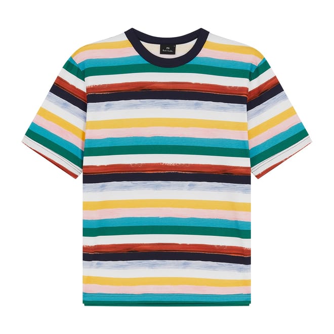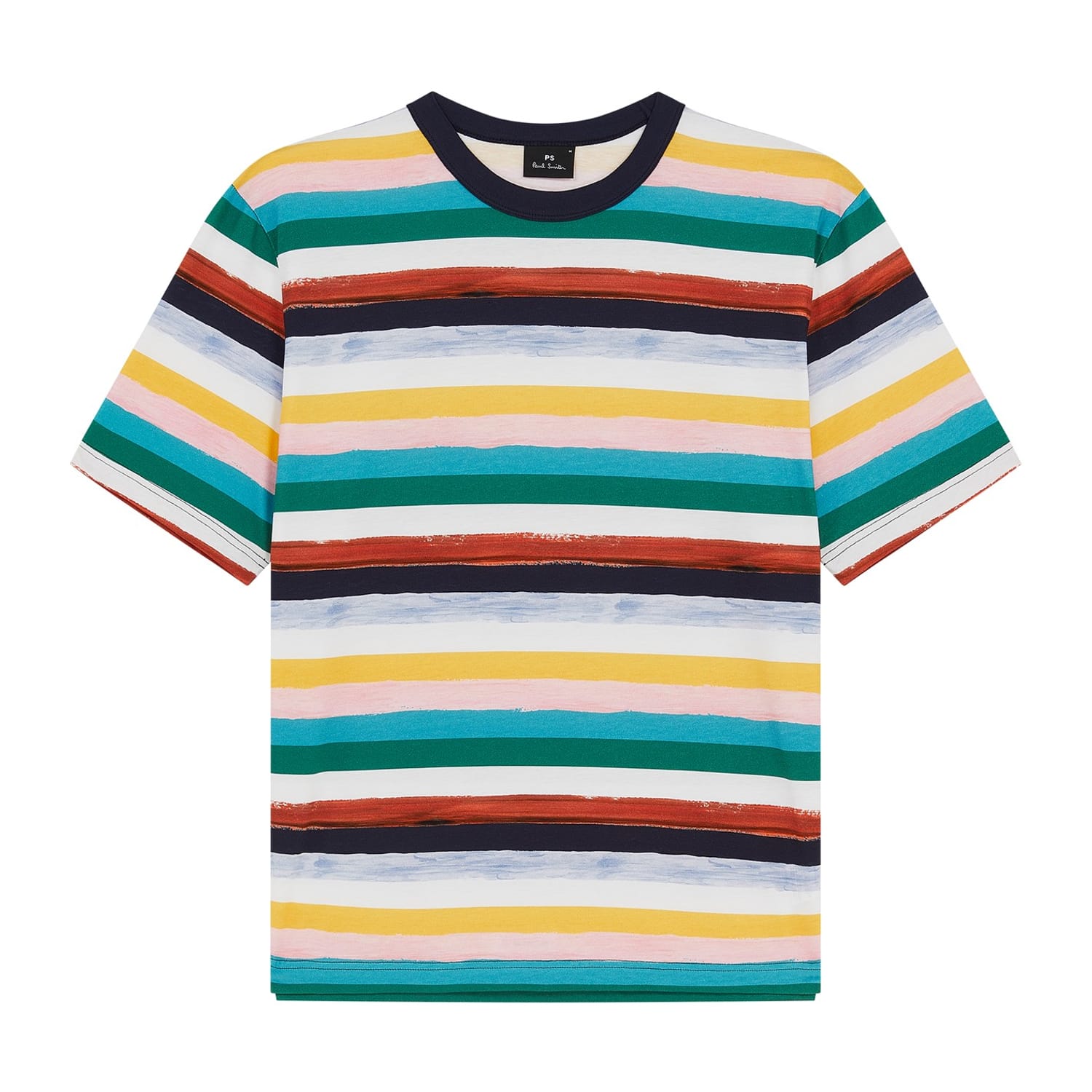 This PS Paul Smith top features a regular fit and short sleeves, offering a comfortable and stylish choice for casual wear. The crew neck design complements the horizontal stripe pattern, adding a touch of modern flair to your wardrobe. -