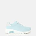 These Skechers junior sneakers are designed for running, featuring a low-top style and a round toe. Perfect for active youngsters, they offer comfort and support during physical activities. The sleek design ensures they are both functional and stylish, making them an ideal choice for energetic days. -