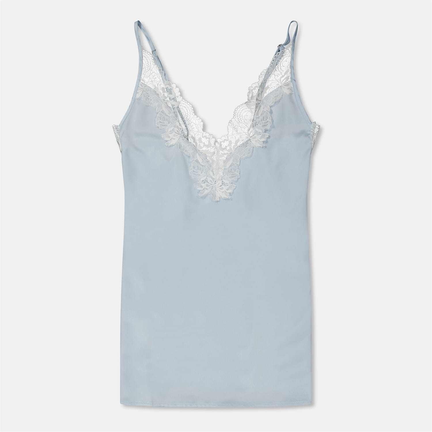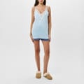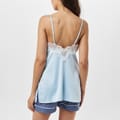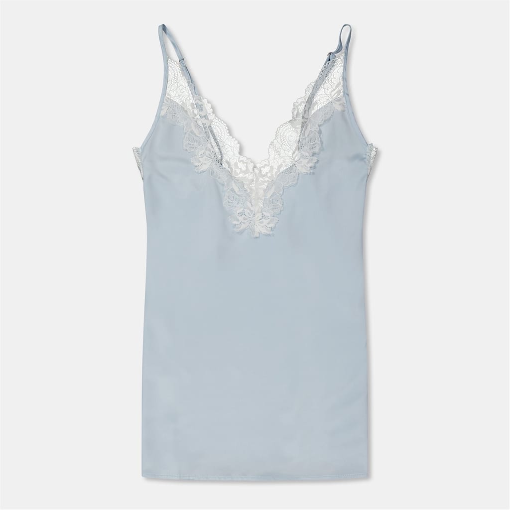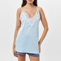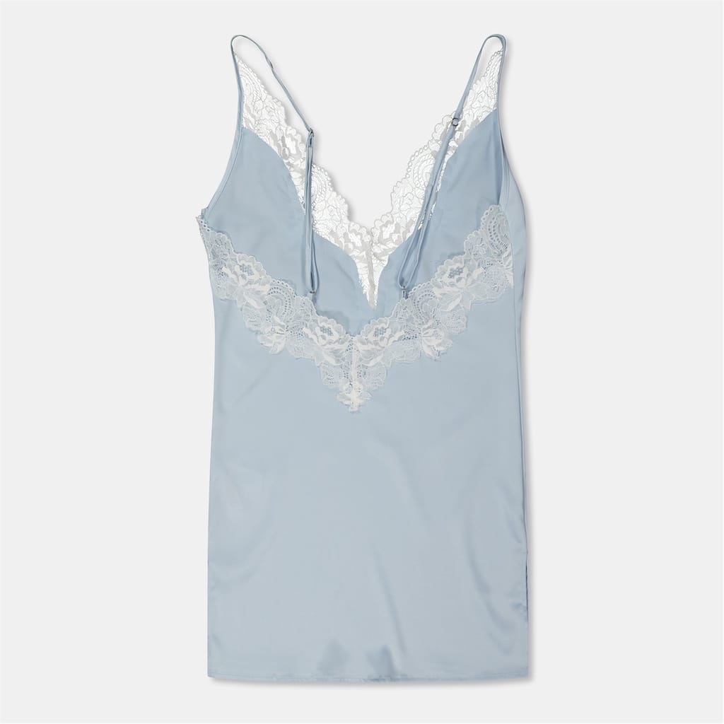 This Bluebella mini slip dress is a sophisticated addition to your loungewear collection. Featuring a v-neck and spaghetti straps, it offers a sleek silhouette. The solid pattern is elegantly enhanced with lace trim, adding a touch of refinement to the overall design. -