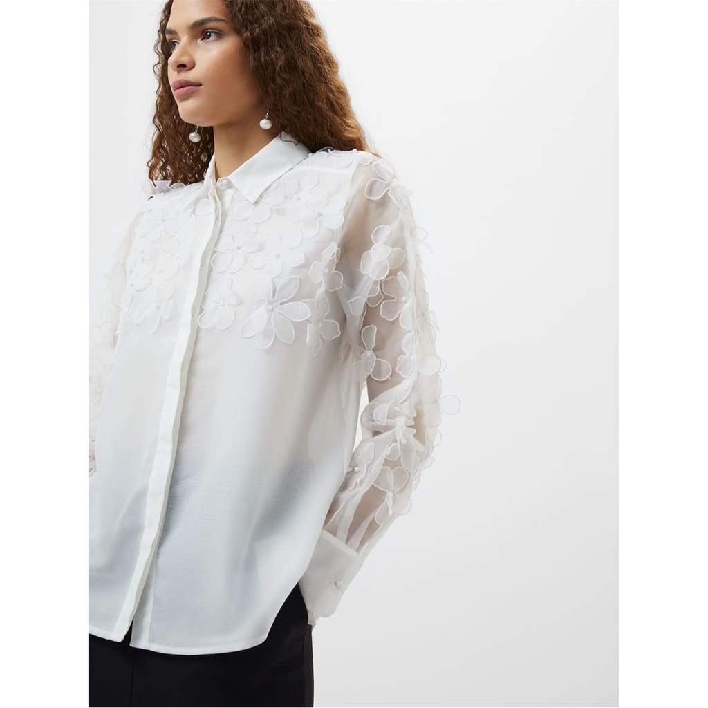 This French Connection top features a relaxed fit with a shirt collar and long cuff sleeves. The floral pattern is enhanced by 3D floral embroidery, adding a unique touch to the design. A button closure completes the look, making it a perfect choice for casual occasions. -