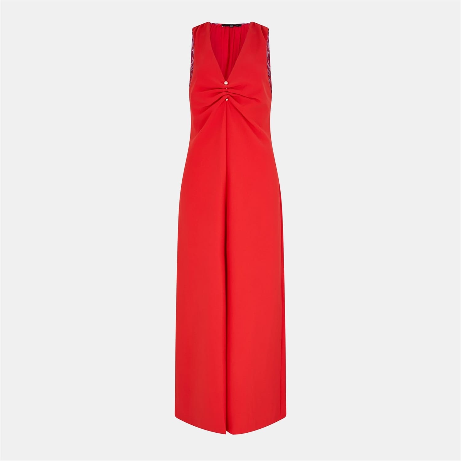 Discover the elegance of French Connection's sleeveless jumpsuit, featuring a sophisticated V-Neck design. This piece is beautifully enhanced with ruched detailing, offering a refined touch to your wardrobe. Perfect for those seeking a blend of style and comfort. -