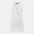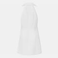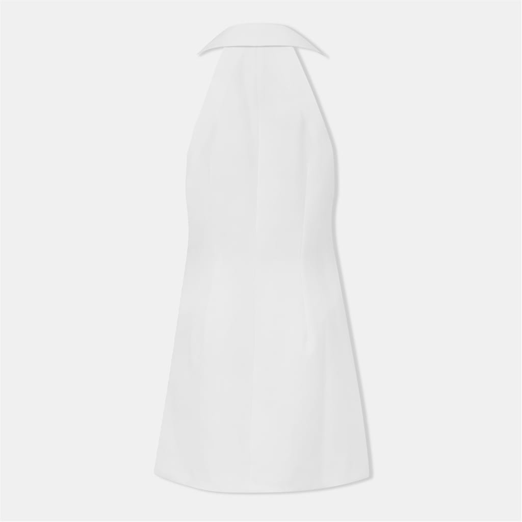 This French Connection mini blazer dress features a halter neck and lapel collar, offering a sophisticated look. The solid pattern and straight hemline enhance its sleek design. With a button closure and regular fit, this dress is perfect for a polished appearance. -