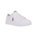 These Polo Ralph Lauren junior sneakers feature a low-top canvas design, perfect for casual outings. The round toe adds comfort and style, making them an ideal choice for young fashion enthusiasts. With their classic silhouette, these shoes offer a timeless appeal that complements any wardrobe. -