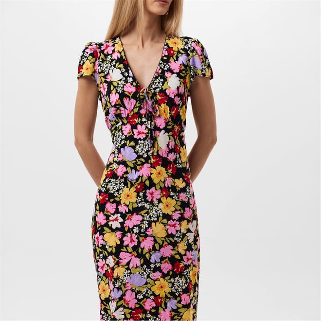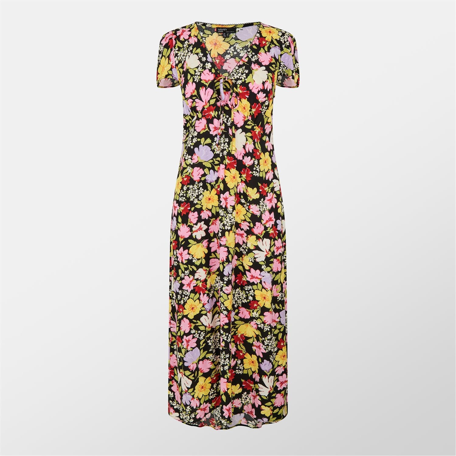 Get summer ready with the Floral Billie Midi Dress by Nobody's Child. Adorned with a vibrant floral print all over, creating a bold and eye-catching visual appeal. From garden parties to holiday strolls, this midi dress is a must-have piece.