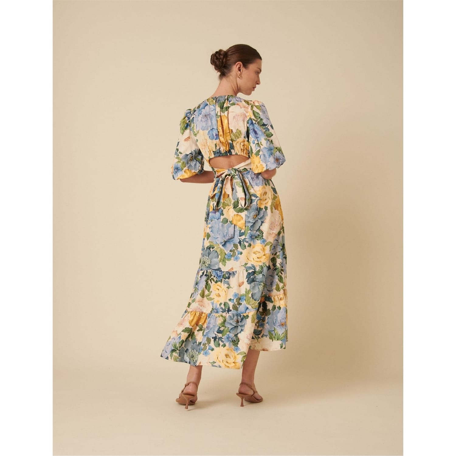 This elegant maxi dress from Nobody's Child features a charming floral pattern. Designed with a crew neck and distinctive balloon sleeves, it offers a stylish and comfortable fit. Perfect for various occasions, this dress combines timeless design with modern flair. -