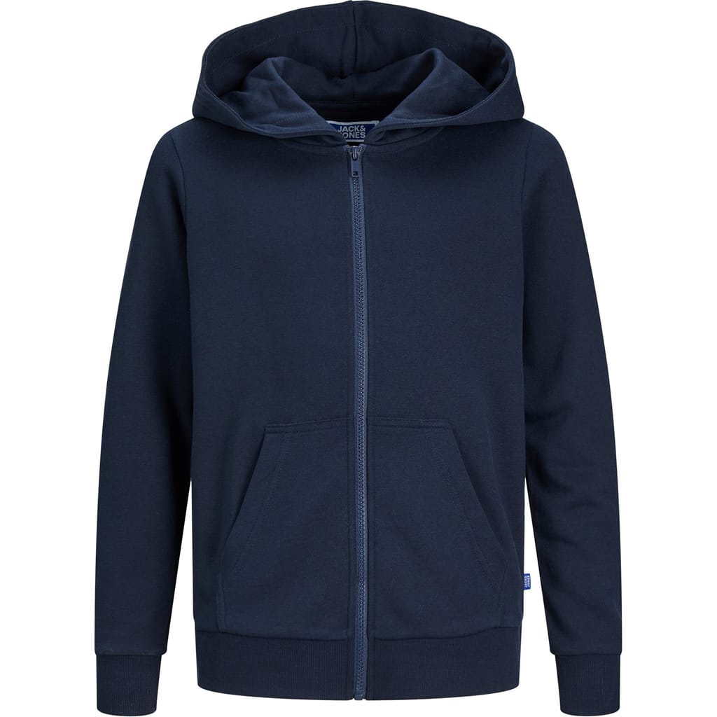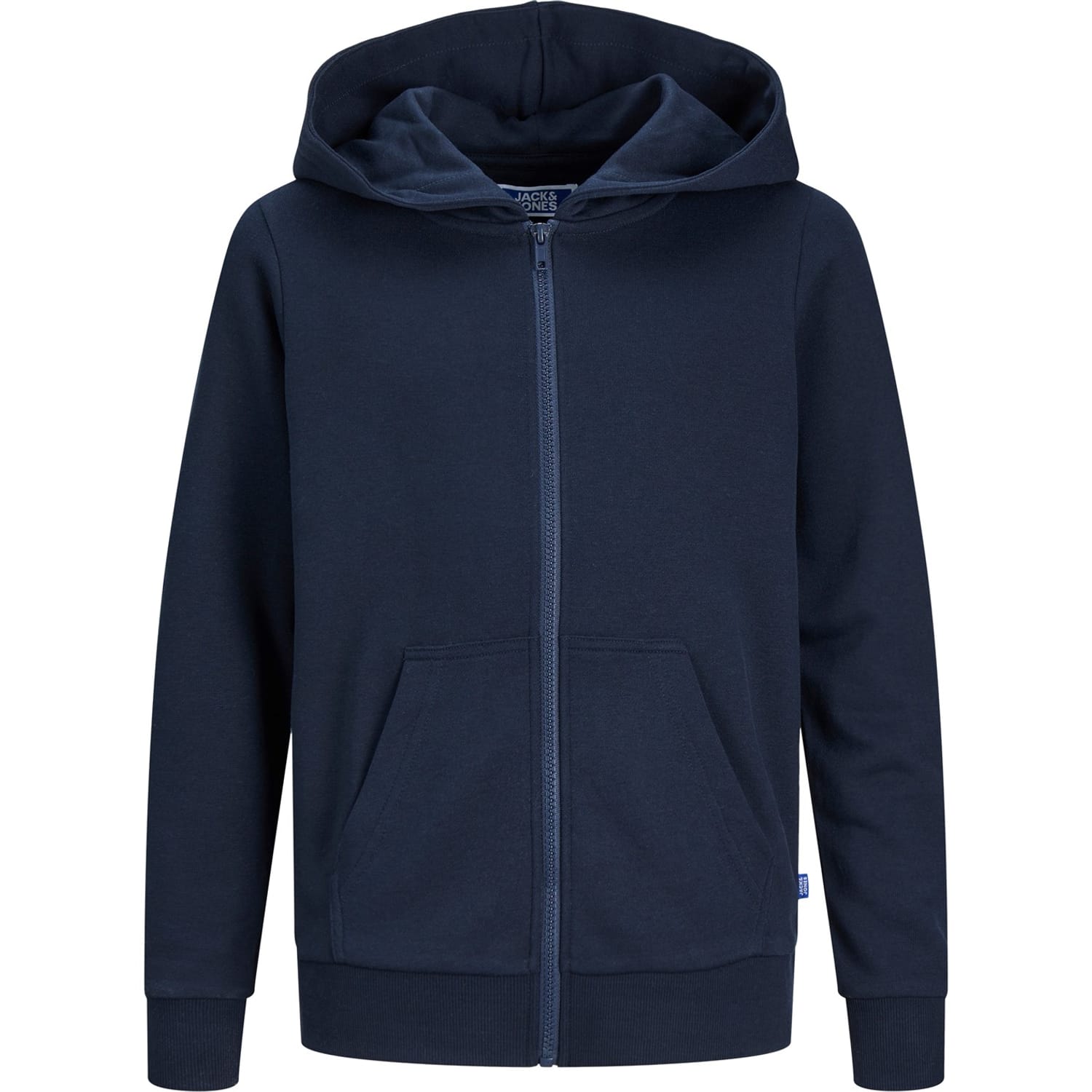 This Jack & Jones sweatshirt features a classic hoodie style with a convenient zipper closure. Designed with a hooded neckline and long sleeves, it offers a regular fit that ensures comfort. The ribbed cuffs add a touch of detail, making it a practical choice for casual wear. -