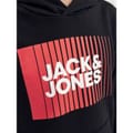 Elevate your casual wardrobe with the Jack & Jones hoodie sweatshirt, featuring a classic hooded design and graphic print. This top showcases a regular fit and long sleeves, providing comfortable wear. The ribbed cuffs add a touch of style, while the logo embellishment adds brand recognition. Ideal for those seeking a stylish yet relaxed top option. -
