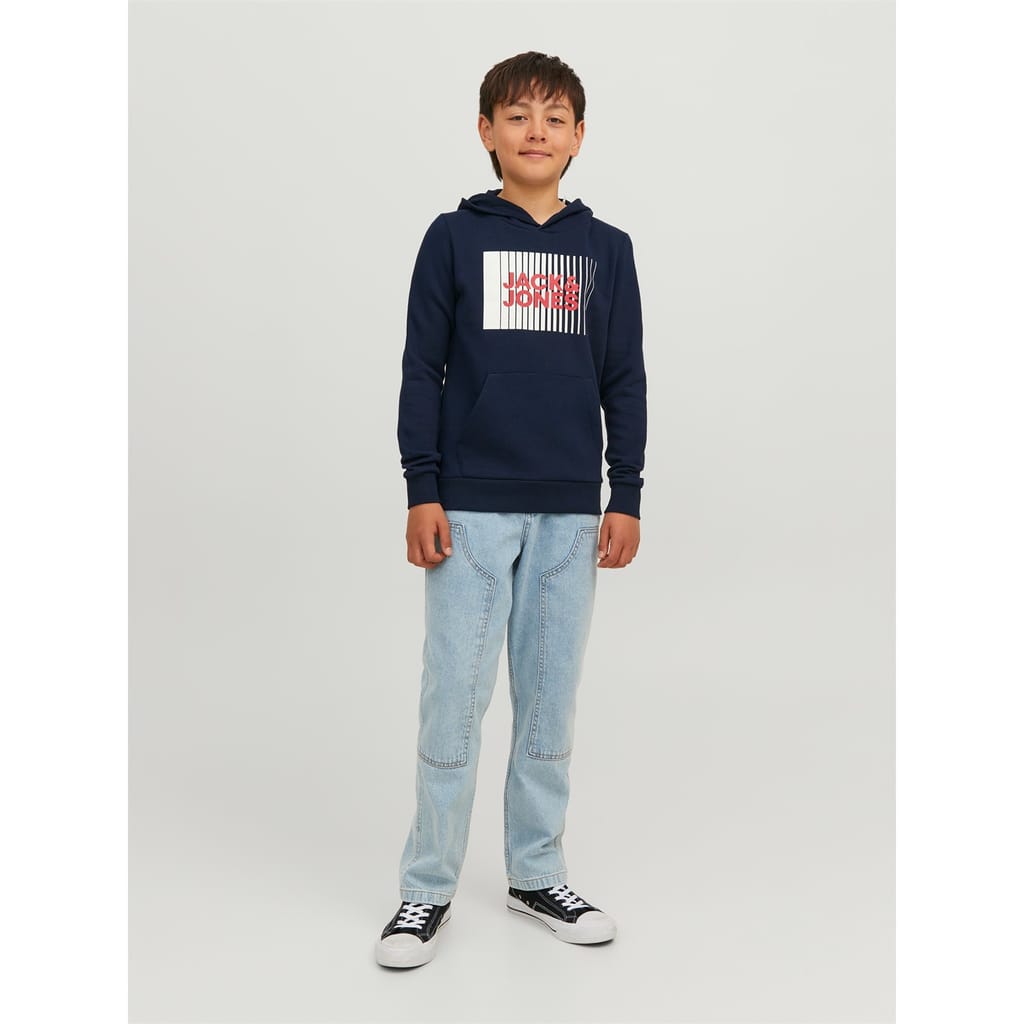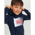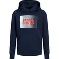 This Jack & Jones hoodie sweatshirt is a staple for casual wardrobes. The regular fit, long sleeves, and ribbed cuffs ensure comfort and style. Featuring a graphic print and a kangaroo pocket, it combines functionality with a trendy look. The hood provides added warmth, making it perfect for cooler days. A discreet logo embellishment adds a touch of brand identity. -
