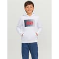 Explore comfort with Jack & Jones' hoodie sweatshirt. Designed with a graphic print, it features a hood and ribbed cuffs, ensuring a regular fit. The kangaroo pocket and front pocket add practical embellishments, while the long sleeves complete the look. Perfect for casual wear, this top combines style and functionality effortlessly. -