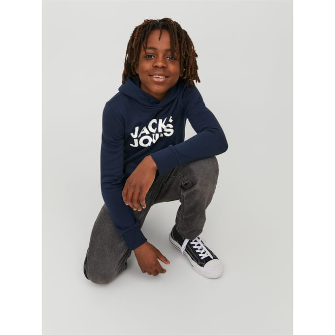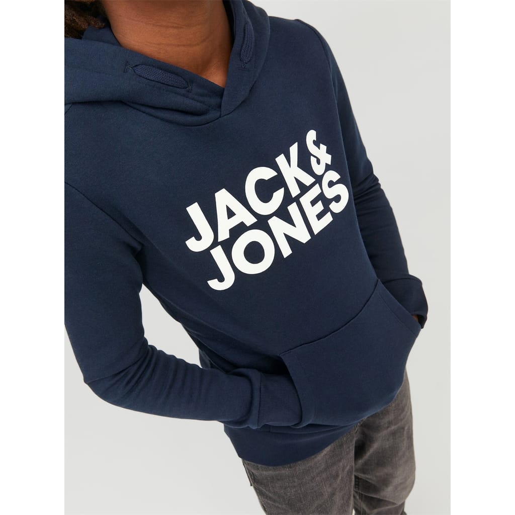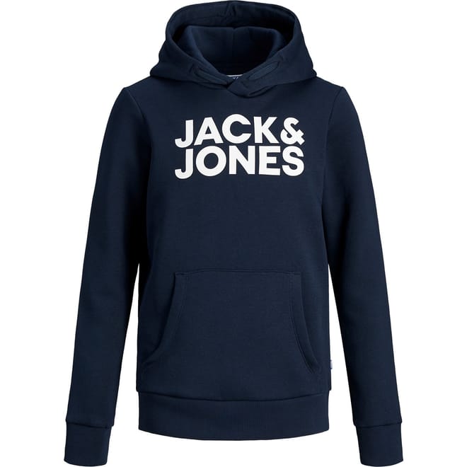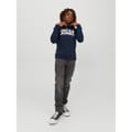 Elevate your casual wardrobe with the Jack & Jones hoodie sweatshirt, featuring a hood and a kangaroo pocket for added practicality. Crafted with a regular fit, this long-sleeve top offers ribbed cuffs and showcases a logo print for a stylish touch. Ideal for a laid-back yet fashionable look, this sweatshirt is an essential addition to any collection. -