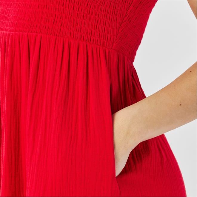 - The shirred bodice is designed to flatter your figure effortlessly.