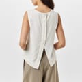 Discover the relaxed fit cropped top from Nobody's Child, perfect for casual occasions. This sleeveless design features a crew neck and a solid pattern, offering a simple yet stylish look. The button closure adds a touch of detail, making it a versatile addition to your wardrobe. -