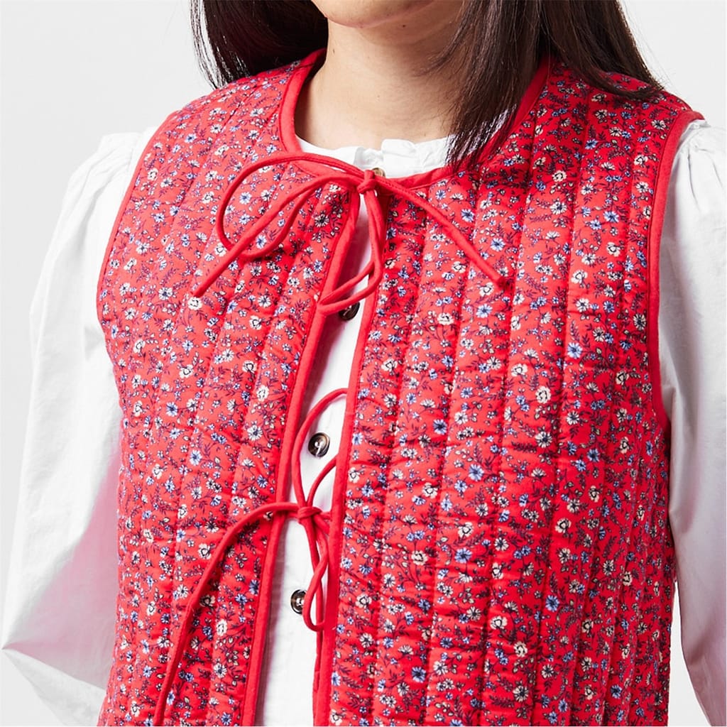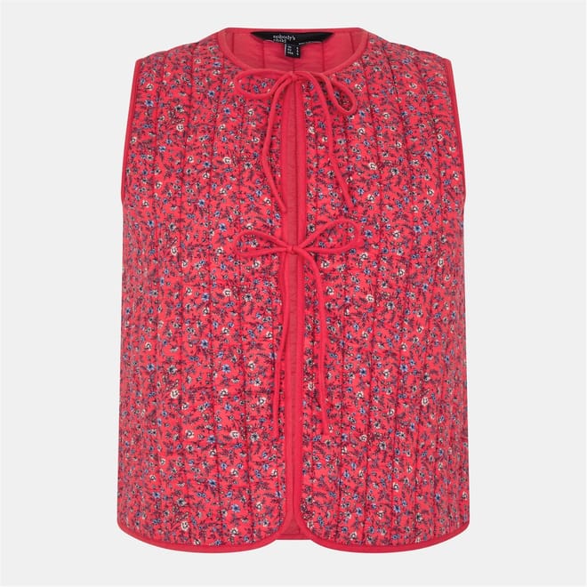 This quilted gilet from Nobody's Child features a charming floral pattern. Designed with a tie front closure, it offers a regular fit and a short length, making it a versatile addition to your wardrobe. The sleeveless design enhances its practicality, perfect for layering during transitional seasons. -