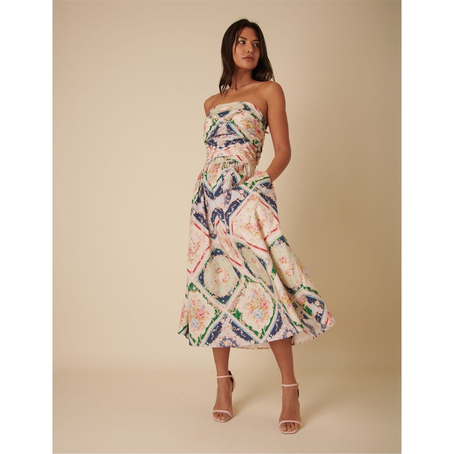 Standout on any occasion with Nobody’s Child’s Abstract Floral Bandeau Felicity Midi Dress, a brand renowned for its feminine styles and vintage-inspired silhouettes. Adorned with an all over abstract print, exuding a captivating visual appeal. From upscale events to stylish weekend outings, this dress is a must-have piece.