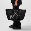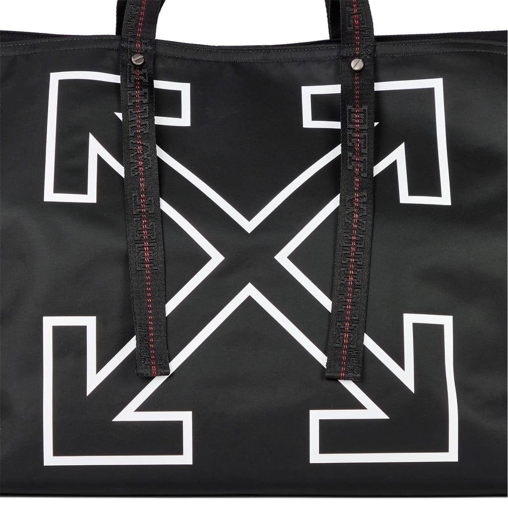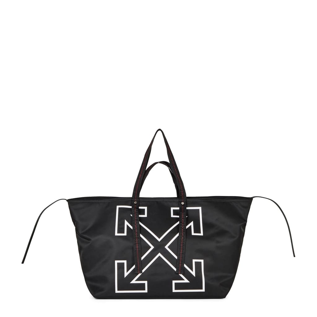 Discover the Off White heritage tote, a stylish addition to your collection. This graphic print bag features a prominent logo and is designed with a convenient shoulder handle for easy carrying. Perfect for those who appreciate a blend of fashion and functionality. -