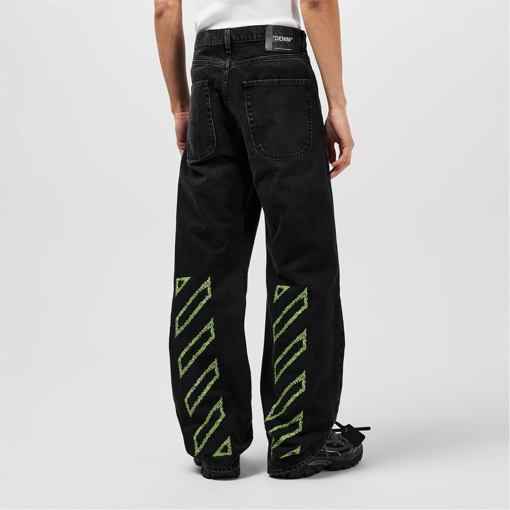 Discover the relaxed fit jeans from Off White, featuring a stylish button fly closure. These jeans are designed with practical pockets, offering both functionality and a modern aesthetic. Perfect for those who appreciate a blend of comfort and contemporary style. -