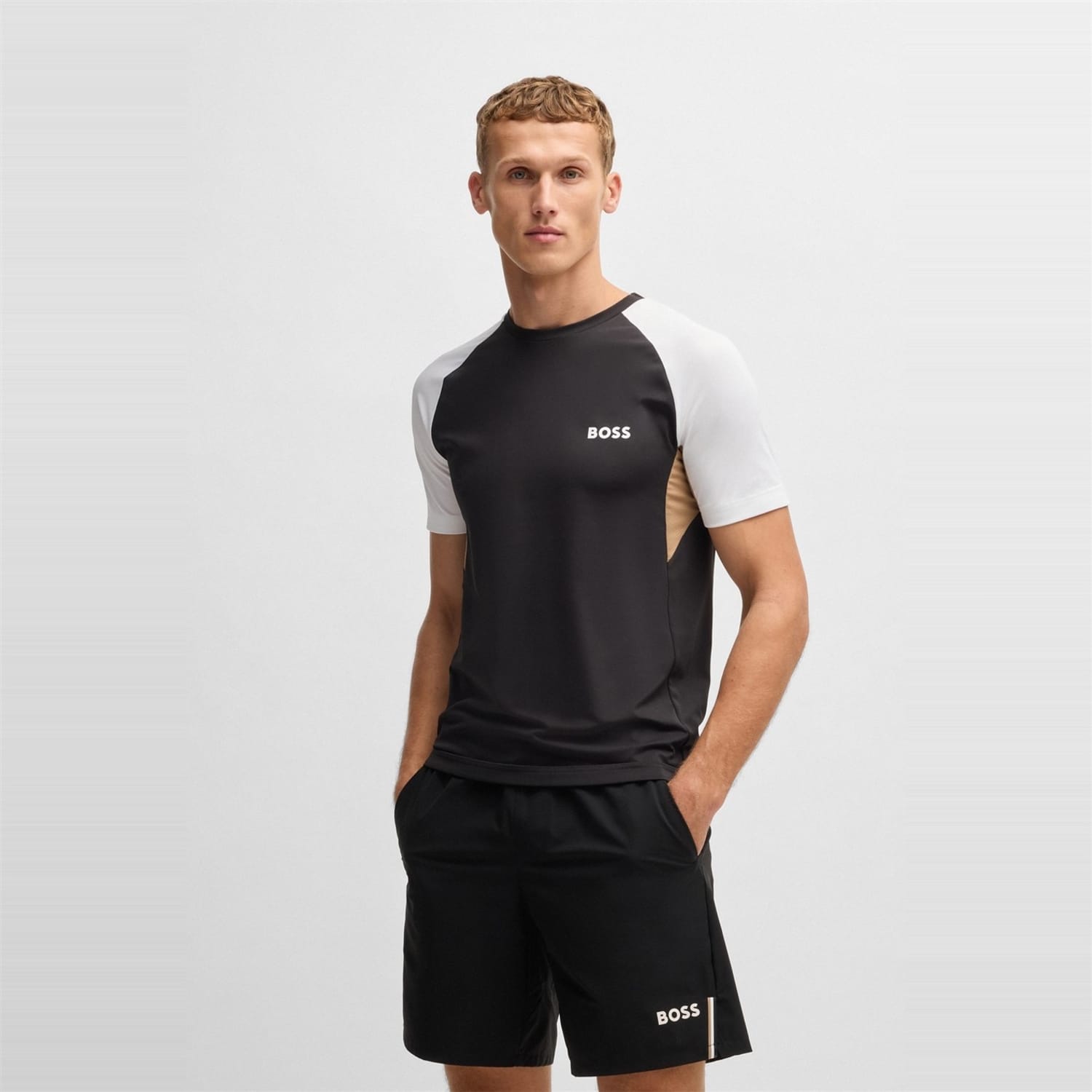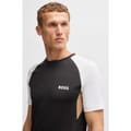 This Boss top from the casual collection features a regular fit and a crew neck. The short sleeves and colour block pattern add a modern touch, while the logo embellishment provides a subtle brand statement. -