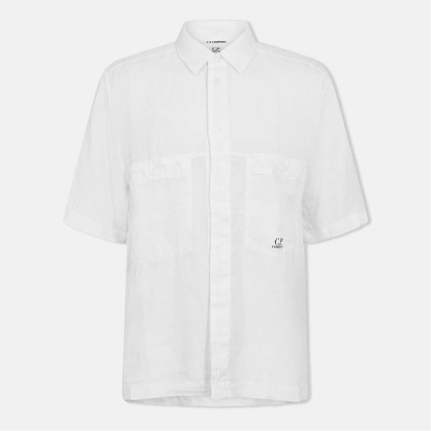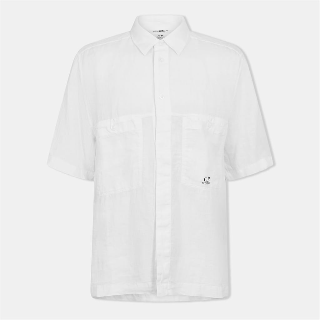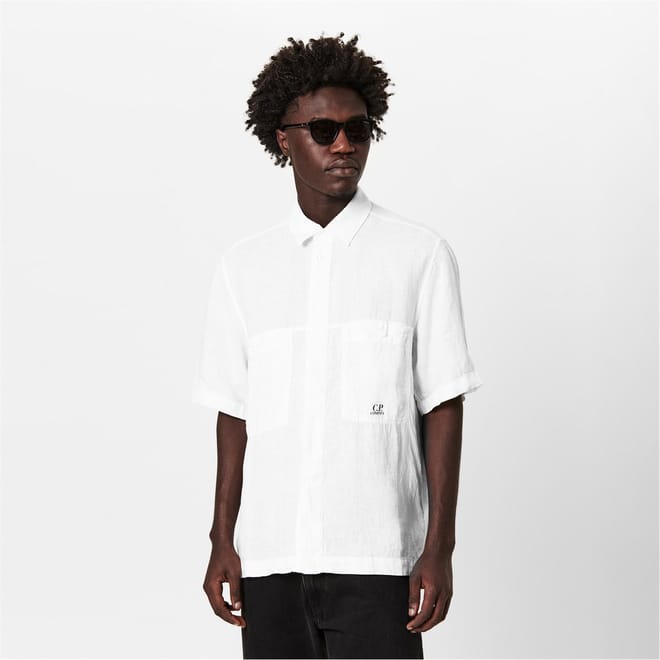 This C.P. Company top is a casual essential, featuring a solid pattern and a regular fit. It includes a button-down closure and a shirt collar, complemented by short sleeves. The design is enhanced with a logo and a chest pocket, making it a versatile addition to any wardrobe. -