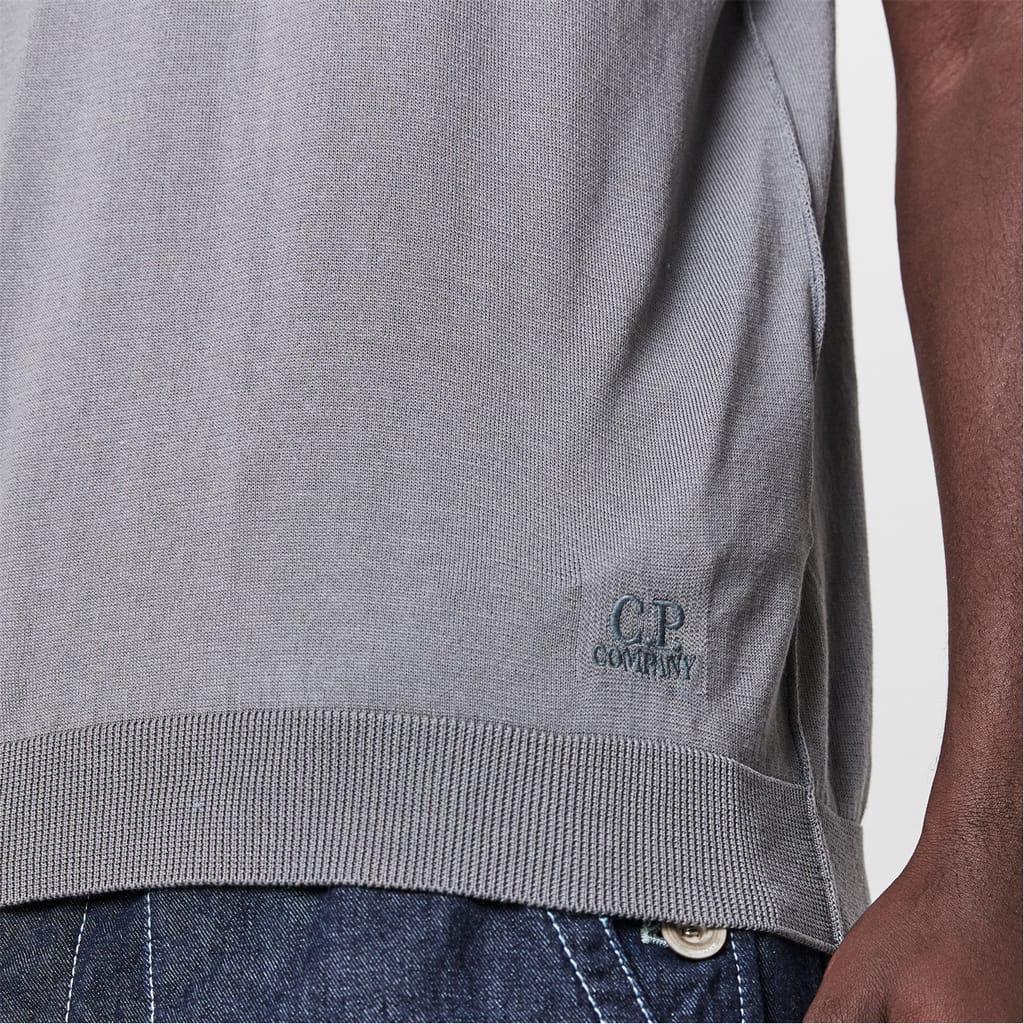This fine C.P Company knitwear is a more refined and smarter polo shirt compared to the typical piquet version, boasting embroidery on the lower section rather than a lens, opting for a clean look -