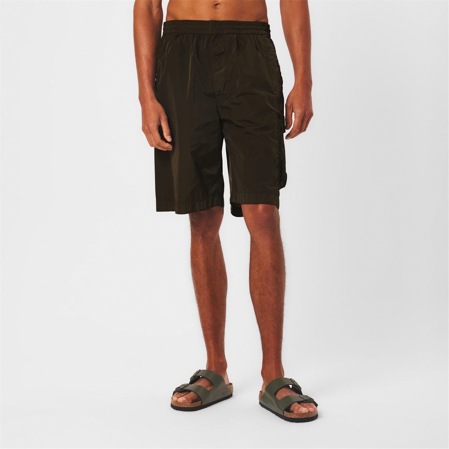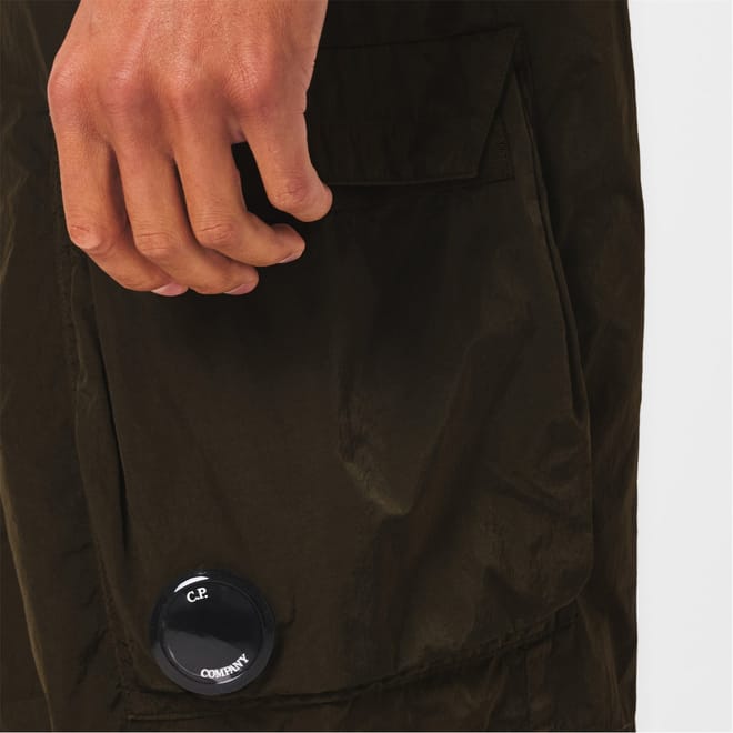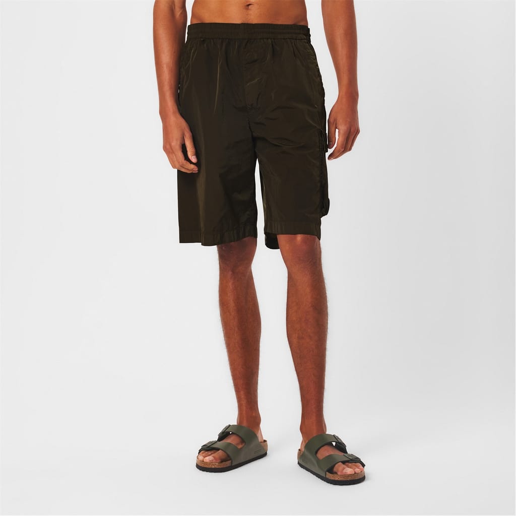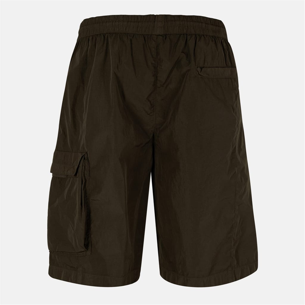 These C.P. Company cargo shorts are designed with a solid pattern and feature a drawstring closure for a comfortable fit. The Bermuda style offers a relaxed look, while the logo embellishment adds a touch of brand identity. Practical pockets enhance functionality, making these shorts a versatile addition to your wardrobe. -