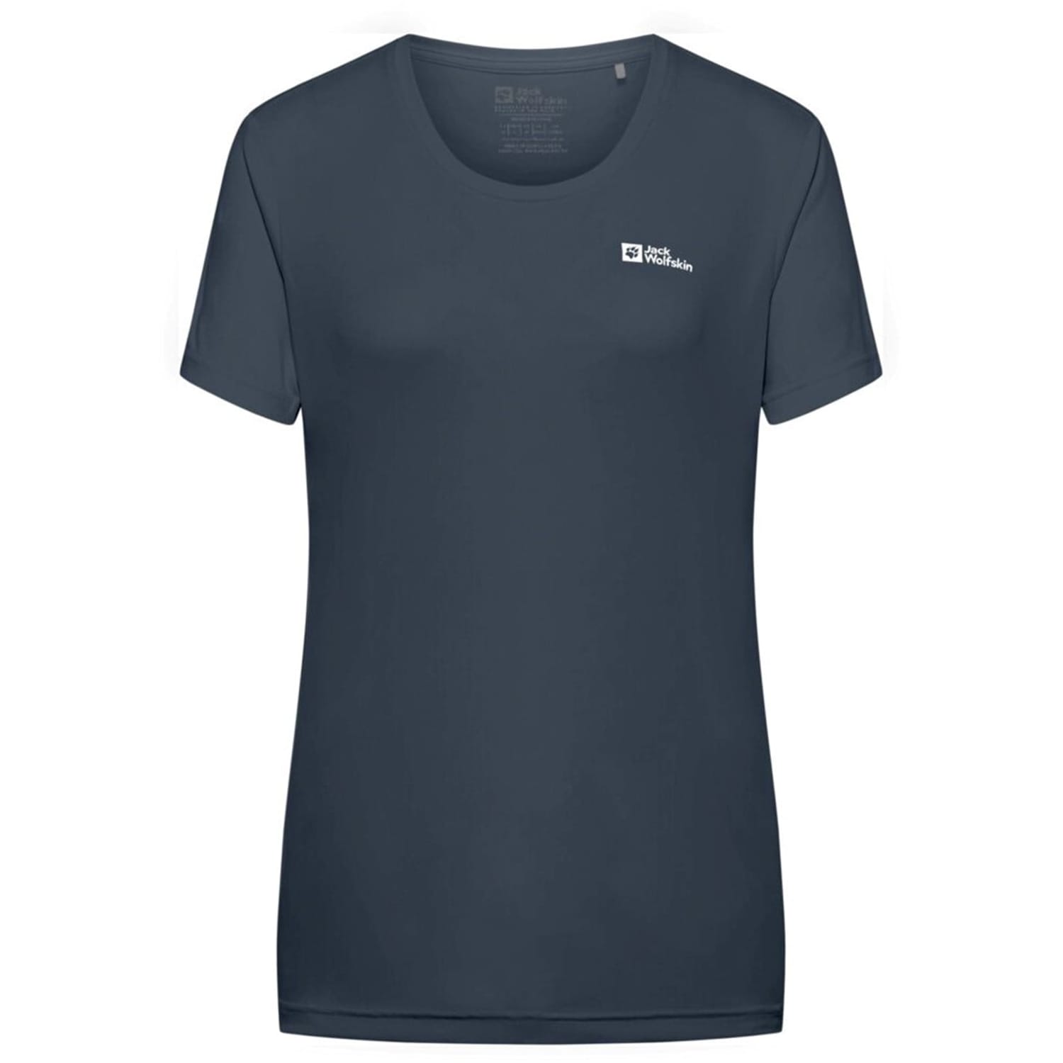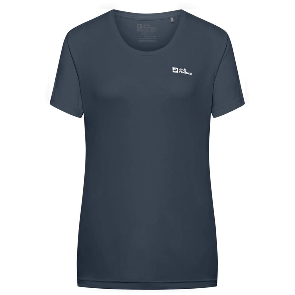 Discover the Jack Wolfskin tech top, a staple in activewear. This solid short-sleeve design features a crew neck and regular fit, ensuring comfort and style. The top is adorned with a subtle logo, adding a touch of brand identity to your wardrobe. -