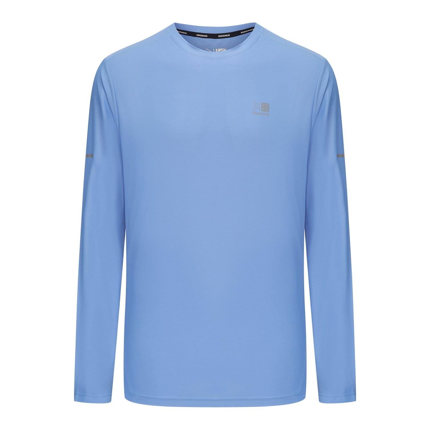 This Karrimor Long Sleeve Run T Shirt is crafted with long sleeves and a crew neckline for a classic look. It features flat lock seams to prevent chafing and is a lightweight construction. This t shirt is a solid colouring throughout designed with a signature logo and is complete with Karrimor branding. -