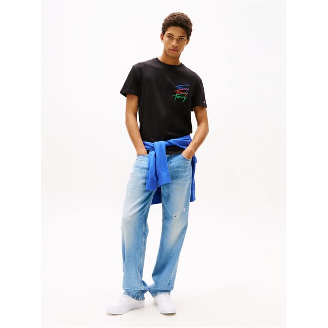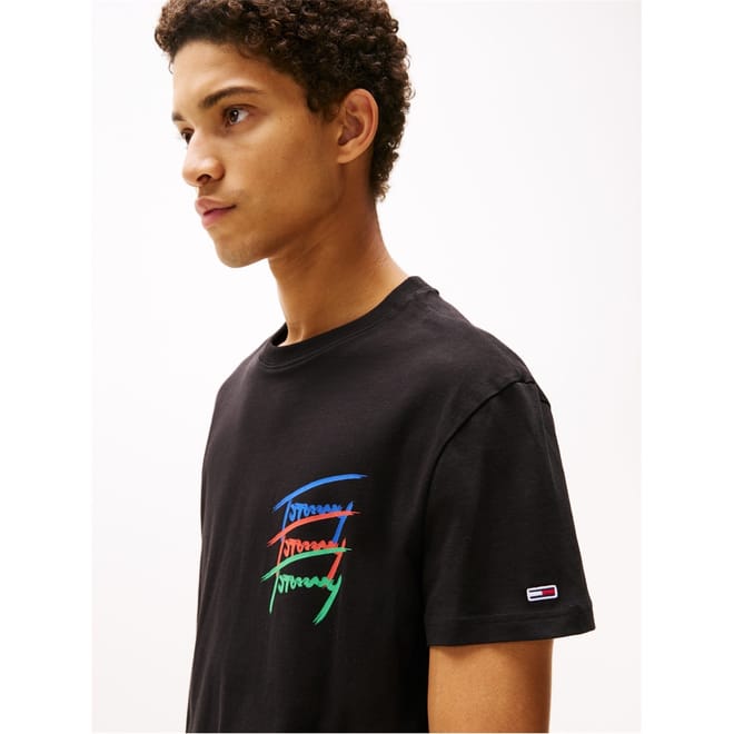 This Tommy Jeans top features a regular fit with a twist effect, offering a stylish graphic print with lettering. The short sleeves and crew neck design provide a classic look, while the logo embellishment adds a touch of brand identity. -
