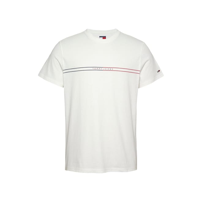 This Tommy Jeans top features a slim fit and a crew neck, perfect for casual wear. The short sleeves and graphic print with lettering add a stylish touch, while the logo embellishment highlights the brand's identity. Part of the entry collection, this top combines comfort and style effortlessly. -