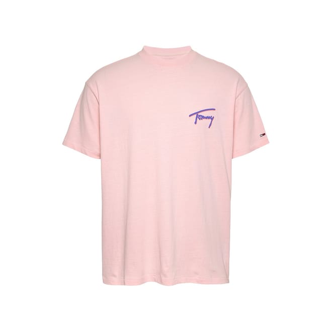 Discover the Tommy Jeans Timmy top, featuring a regular fit and short sleeves. This piece showcases a striking graphic print with lettering and a faded logo embellishment, adding a unique touch to your wardrobe. The mock neck design enhances its modern appeal, making it a standout choice for any casual occasion. -