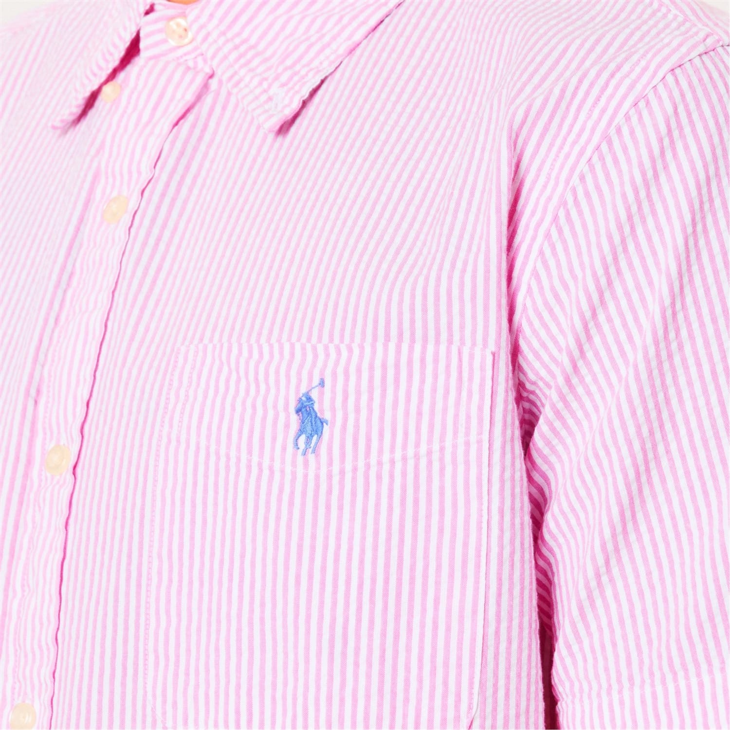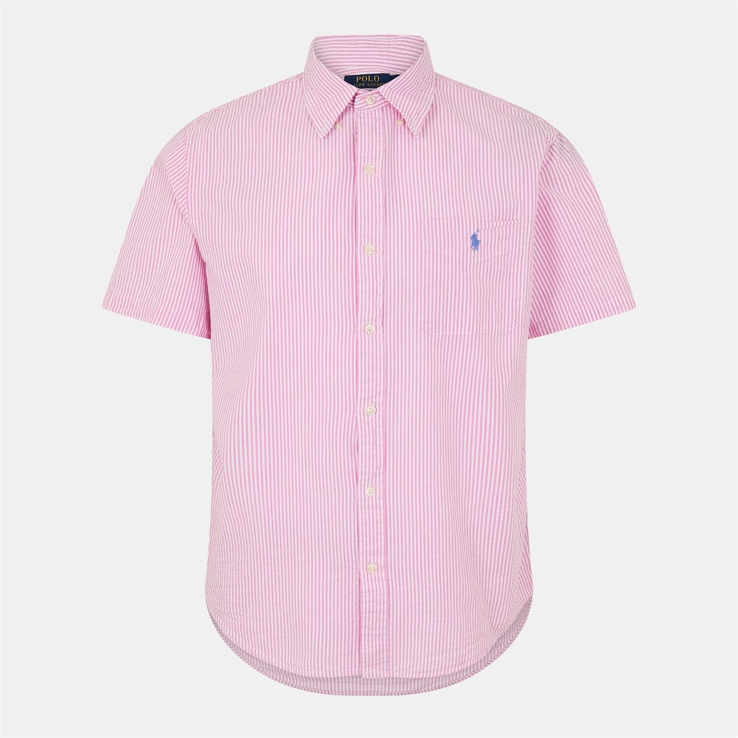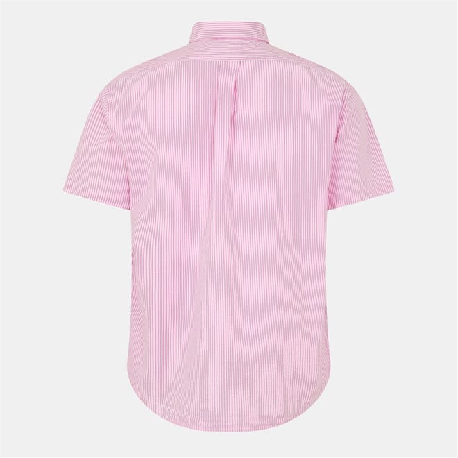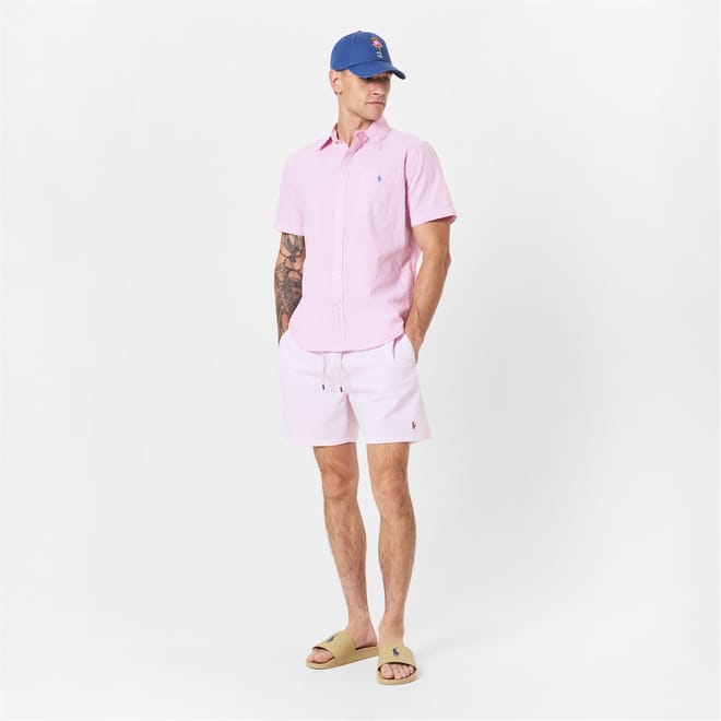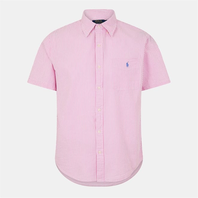 This Striped Short-Sleeve Shirt from Polo Ralph Lauren features classic patterned fabric with a textured finish that delivers breathable comfort for warm days.