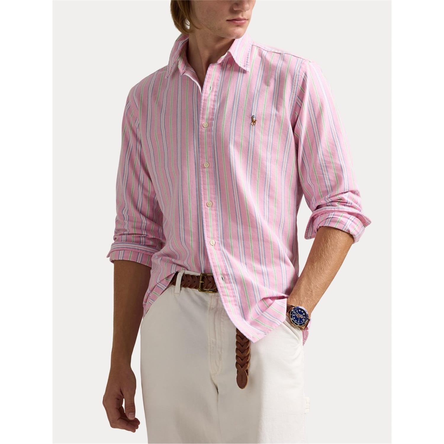 Update your smart-casual collection with the Polo Ralph Lauren Multi-coloured Striped Poplin Shirt. Suave, distinguished and breathable, this shirt elevates your ensemble and enhances your comfort with its soft feel. From important meetings to refined dinners, this shirt will become a staple in your business wear collection.